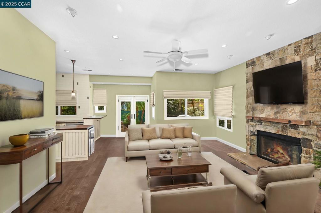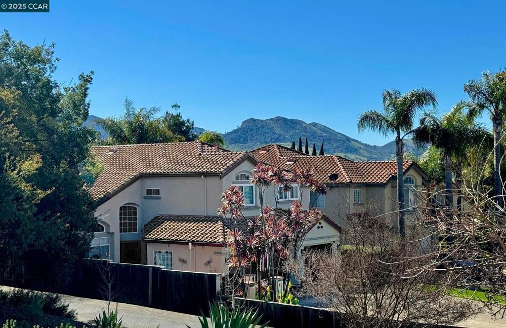 This home is not to be missed! This light and bright, beautifully maintained and recently updated home is located in the highly desirable and secluded Canyon Creek subdivision of Clayton Valley with views of Mt Diablo and surrounding hills. This freshly updated and beautifully appointed home features a stunning and spacious floorplan with 5 bedrooms and 3 baths, (1 BEDROOM/1 FULL BATHROOM ON FIRST LEVEL). Enter the home to high vaulted ceilings in the flowing foyer/living room/dining room combo. The first level bonus room features a cozy gas fireplace, transitions between spaces and plenty of room for entertaining. The glass french doors from the dining room opens to your oasis back yard, tropical pool surround, built in gas fire pit and privacy fencing to compliment your serenity . The remodeled kitchen features stainless steel appliances; professional gas stove and oven, dishwasher, and large french door refrigerator. Upstairs, the primary bedroom features an ensuite bath with double sinks, relaxing tub and shower. The community is beautifully landscaped, offering a kiddie park, tennis courts and is conveniently located near the charming town of Clayton, trails, parks, schools and shopping.