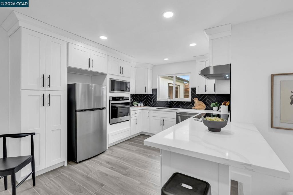 Fully remodeled single-story with a clean, modern look and a layout that lives easy. Step into a bright, open interior with recessed lighting, wide-plank style flooring, and a statement fireplace wall that anchors the main living space. The updated kitchen is designed for function and flow with crisp cabinetry, abundant counter space, stainless appliances, and a large peninsula for casual meals and entertaining. Both bathrooms have been reimagined with designer finishes, including spa-like tile work, sleek fixtures, and thoughtful details throughout. The primary suite offers a private retreat with direct access to the backyard. Out back, enjoy true California living with a pool, plenty of patio space for lounging and dining, and room to host summer gatherings. Convenient Concord location close to schools, parks, shopping, and dining.