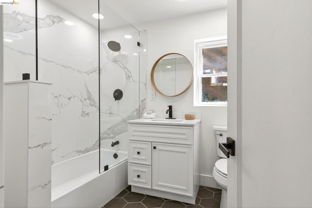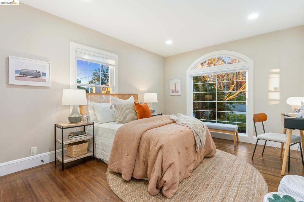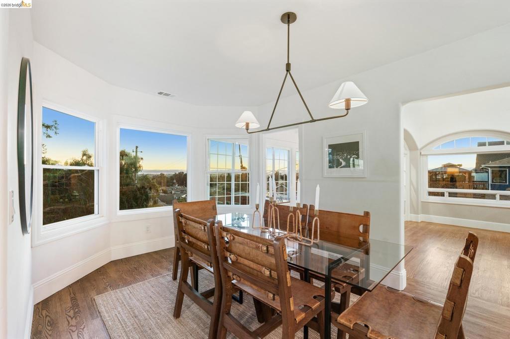 VIEWS! VIEWS! VIEWS! Welcome to your Oakland oasis! This updated home is a light-filled masterpiece, nestled in the sought-after Oak Knolls/ Golf Link neighborhood. Prepare to be swept away by the dramatic, open-concept floor plan and the meticulous designer finishes found throughout. From the moment you step inside, you are greeted by a spacious living room featuring refinished hardwood floors, magnificent arched high ceilings, and a cozy wood-burning fireplace. Large, strategically placed windows frame the breathtaking, unobstructed views of the San Francisco skyline. A view you can soak up even closer from the incredible sunroom, easily accessible from both the dining and living areas. Imagine ending every day with an outstanding sunset spectacle. The kitchen is finished with modern cabinetry, stainless-steel appliances, & striking quartz counters and backsplash. Making it as beautiful as it is functional. The primary suite with luxurious shower, another bedroom and one full bath finish the main level. The lower level offers 2 more bedrooms, a full bath & large storage area. Enjoy dining al fresco in the landscaped backyard. Upgrades in 2022 include, a new roof, HVAC, tankless water heater, new electrical and copper plumbing, and NEST thermostat.