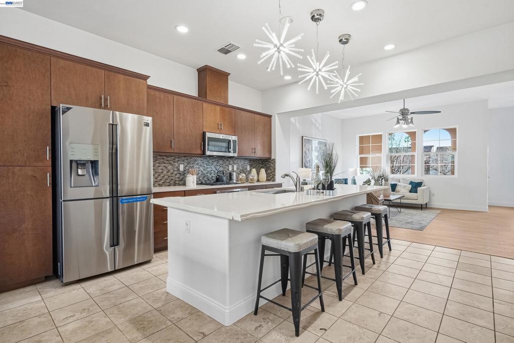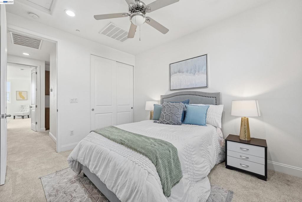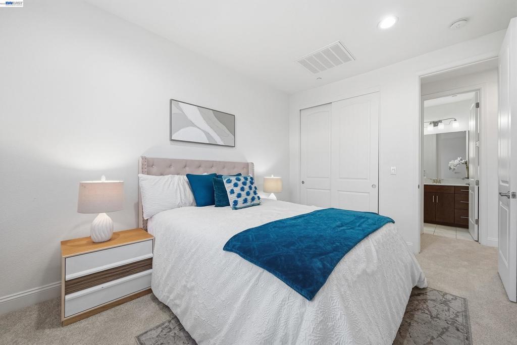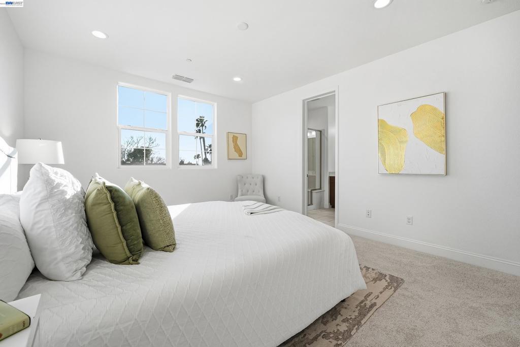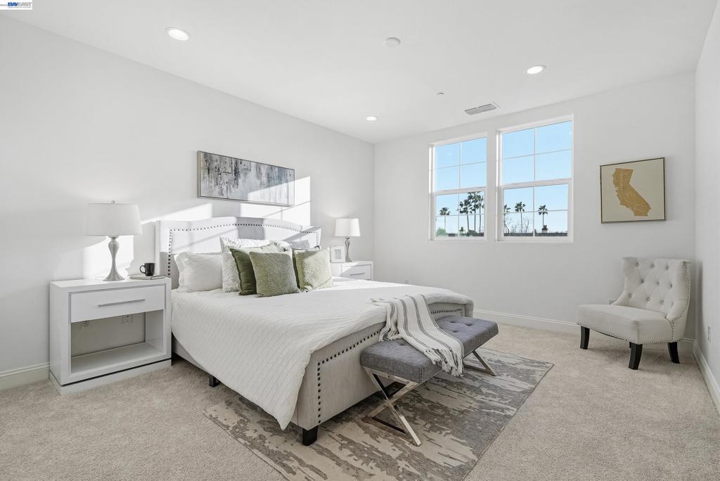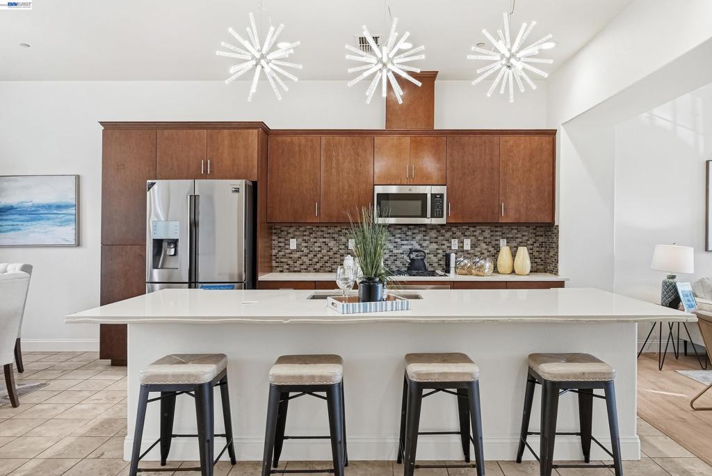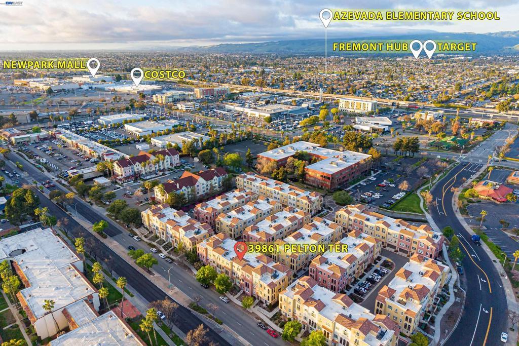 This highly sought-after luxury townhouse blends modern elegance, comfort, and everyday convenience in a beautifully designed open-concept floor plan. Built just 11 years ago, this spacious 2,114 sq. ft. home offers 4 beds, 3.5 baths, a 2-car garage, and low HOA dues. he main living area showcases soaring ceilings and an expansive living and dining space filled with natural light. The gourmet kitchen is a true centerpiece, featuring a large island, quartz countertops, stainless steel appliances, a gas cooktop, and seamless access great room and a covered balcony—ideal for year-round enjoyment and entertaining. The primary suite offers a private retreat with an en-suite bath and generous walk-in closet. A desirable ground-floor bedroom with a full attached bath provides flexibility for guests, multigenerational living, or a home office. Additional highlights include recessed lighting, a dedicated laundry room, and an energy-efficient tankless water heater. Ideally located near Newpark Mall, with abundant shopping and dining options just moments away. Enjoy access to top-rated schools, convenient freeway connections to I-880, CA-84, and I-680, and proximity to major employers such as Tesla, Meta, Kaiser and Costco -Perfect combination of luxury, location, and lifestyle.