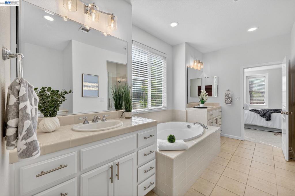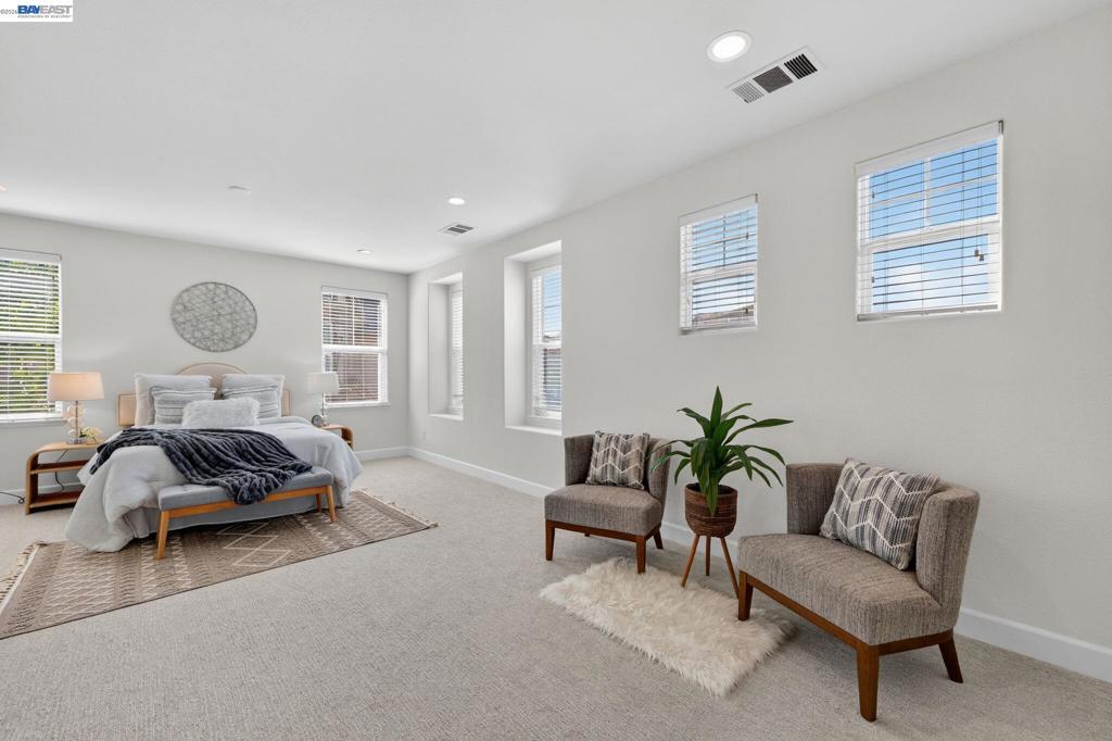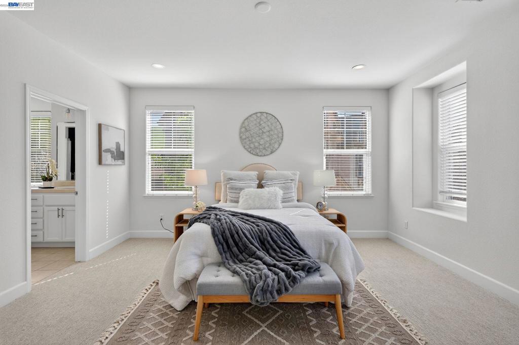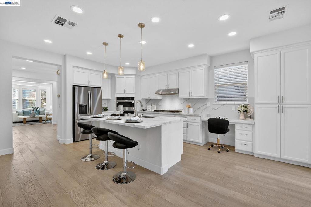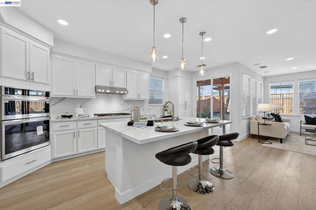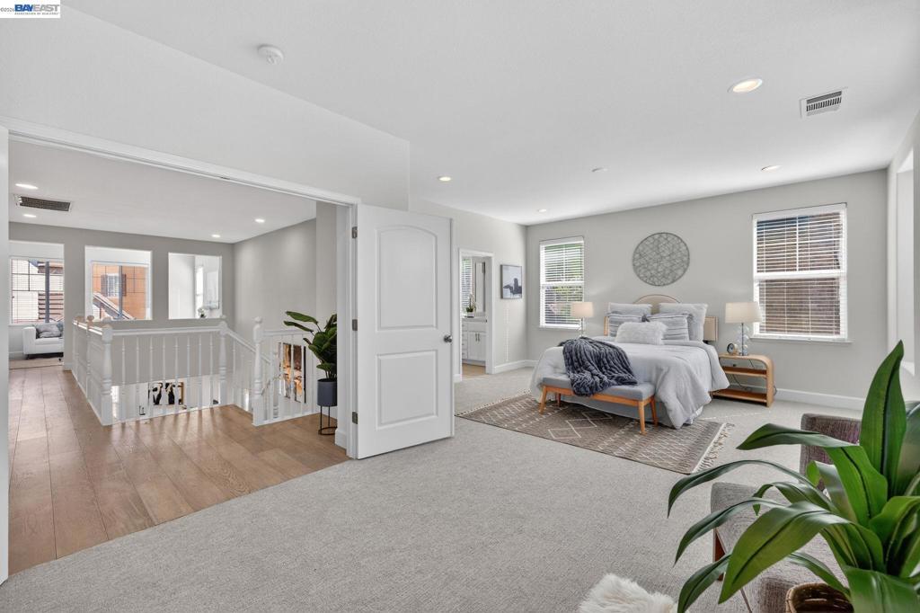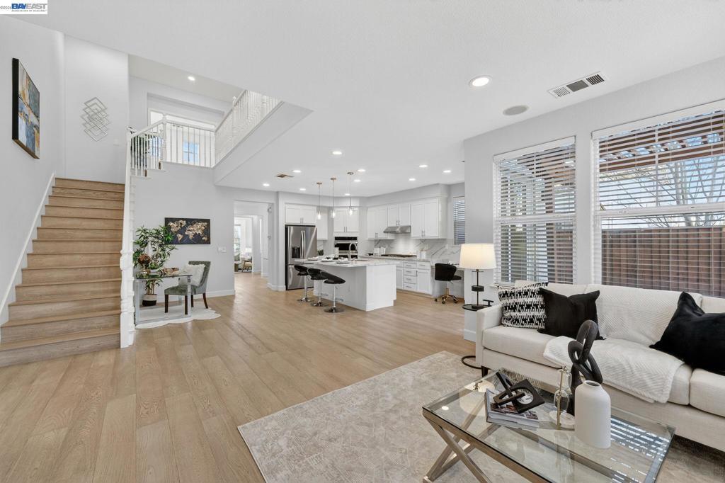 Welcome to this beautifully updated 4-bedroom, 3-bath Windemere home offering 2,619 sq ft of refined living on a quiet cul-de-sac, walking distance to top-rated Hidden Hills Elementary and Dougherty Valley High School. Designed for flexibility and comfort, the ideal floor plan features a full bedroom and bath on the main level perfect for guests, multi-generational living, or a private office plus a spacious upstairs loft for relaxing or entertaining. Step inside to formal living and dining rooms, and a spacious family room with a cozy gas fireplace and built-in speaker connections. Brand-new hardwood flooring, plush carpeting, fresh interior paint and recessed lighting create a true move-in-ready feel. The chef’s kitchen features quartz countertops, a large island with breakfast bar seating, white cabinetry, stainless steel appliances, a 5-burner gas cooktop, and French door refrigerator. The luxurious primary suite offers a sitting area and spa-inspired bath with dual vanities, soaking tub, oversized shower, and walk-in closet. Two additional upstairs bedrooms share a full hallway bath & separate Laundry room for your convenience. Enjoy a private backyard with stamped concrete, stone retaining wall, and fruit trees. close to top-rated schools, parks, trails, and shopping.