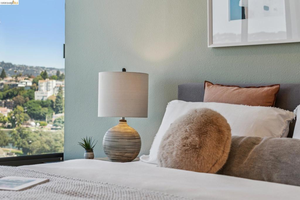 It's finally happened: a highly sought after, rarely available, two bedroom, two bathroom apartment in the coveted Park Bellevue is looking to change hands. With wall-to-wall windows and panoramic city and lake views, it is immediately obvious why these units rarely come up – and why they are so desired. Open concept living/dining, hardwood floors throughout, and a generous, modern kitchen invites gatherings, hosting, and basking in the golden hour sunsets that bathe the apartment in pink and orange. Both bedrooms look over the skyline and lake, and two well appointed bathrooms channel a spa-like serenity that will make it hard to leave home; though when you do, you won't need to go far for coffee, walks, and dinner out. Park Bellevue is ideally situated along the lake's edge, meaning the best of Oakland's food scene is centered in the surrounding blocks; picnics and dog-walks on the shore are at your fingertips; and the vibrant joy and liveliness of Oakland is all around. And yet, your oasis is just steps away – zip up the elevator to indulge in the pool with sweeping lake views, gym, sauna, or clubhouse. Additionally, enjoy the peace that comes with 24/7 on-site security, and a secured, covered parking space. The Park Bellevue is luxury, beauty and ease. Welcome home.