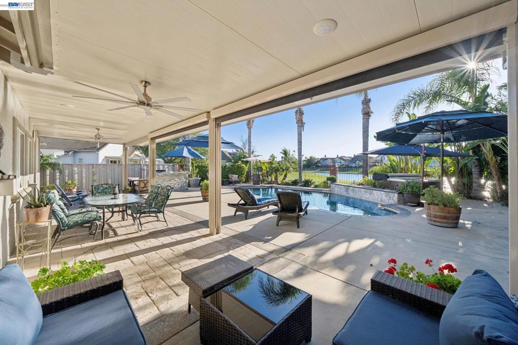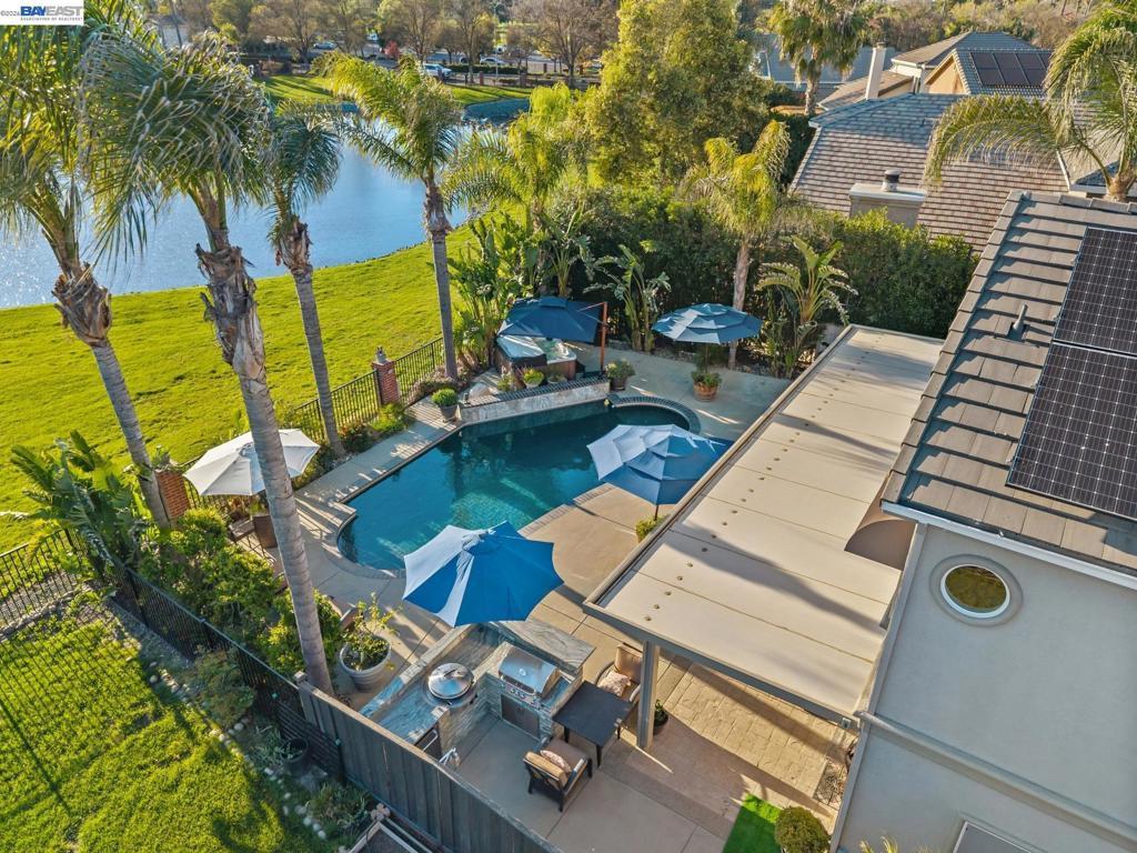 Experience resort-style living in this stunning 5-bedroom in one of Discovery Bay’s most desirable gated communities. With over $100,000 in upgrades, this expansive residence offers the ideal blend of elegance, comfort, and outdoor enjoyment. Step inside to discover generous living spaces designed for both everyday living and entertaining. The spacious floor plan features five well-appointed bedrooms, providing flexibility for guests, a home office, or multigenerational living. Outdoors is where this home truly shines. Enjoy your private swimming pool, a covered patio for year-round relaxation, and a fully equipped outdoor BBQ area—perfect for hosting gatherings with family and friends. The backyard backs directly to a serene private lake, offering tranquil water views and added privacy with no rear neighbors. Enjoy the owned solar system for energy efficiency and long-term savings
