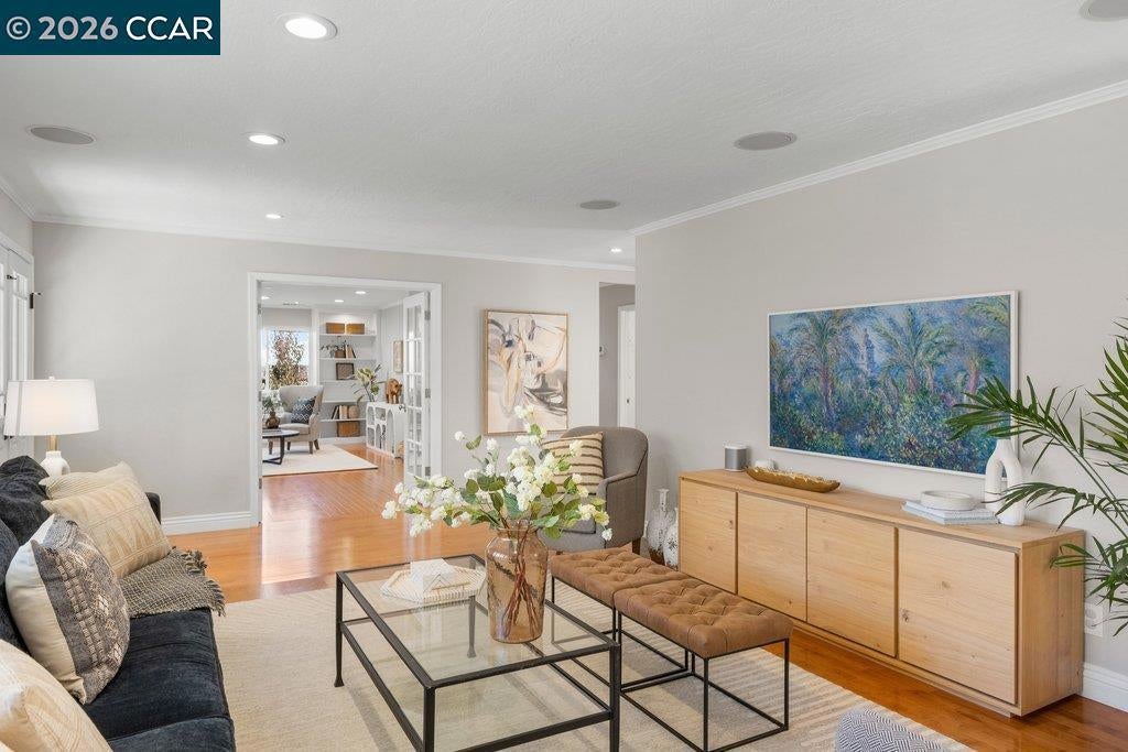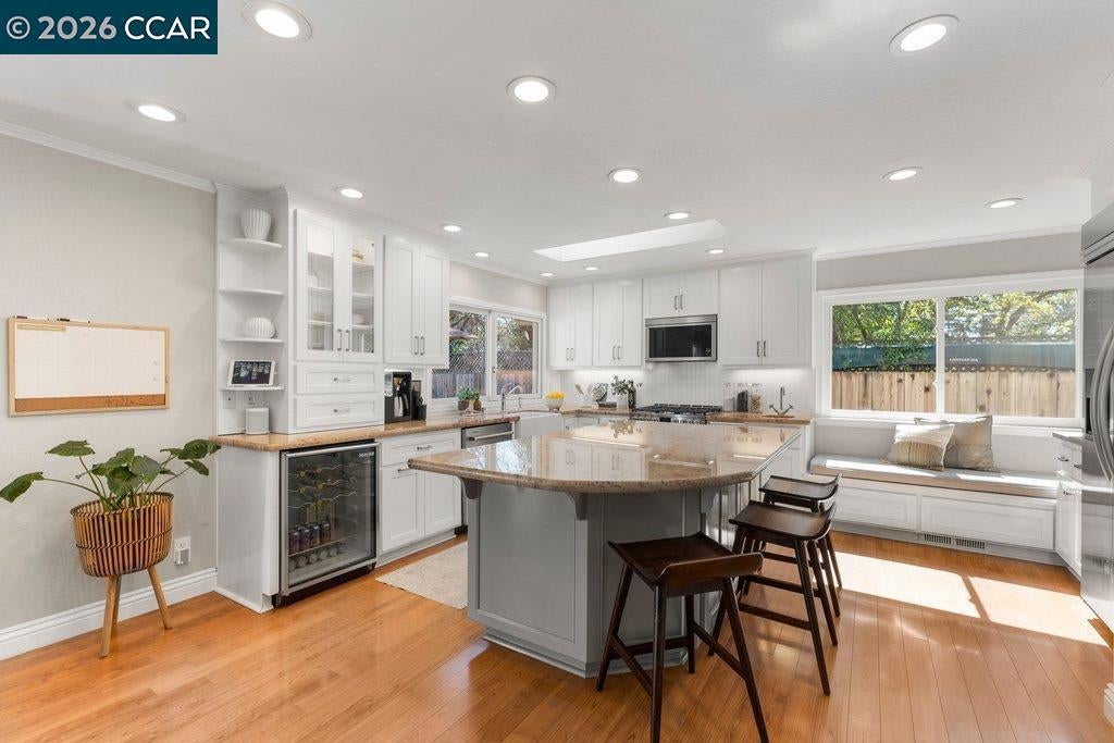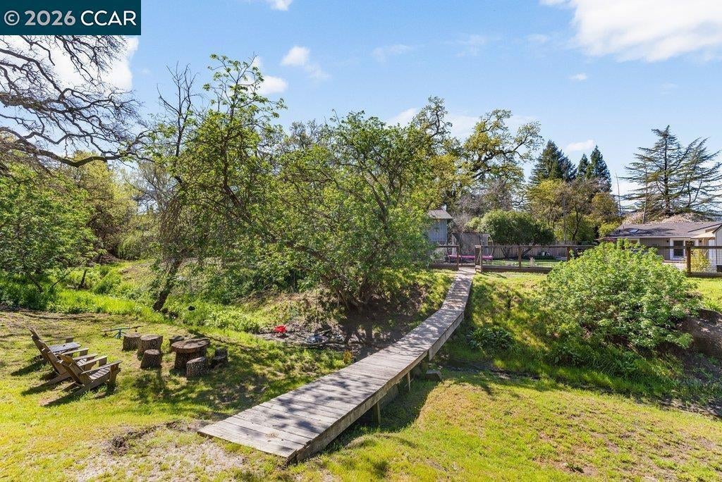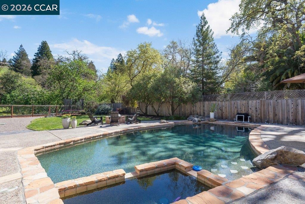 Just a short walk to town! This charming single-story home is positioned on a spacious .46-acre lot along a quiet country lane. Ideally located within walking distance to downtown Danville and the highly rated Vista Grande School, this property offers the perfect blend of charm, comfort, and convenience. The home features four bedrooms, two bathrooms, a welcoming living and dining area, all within approximately 2,331 square feet of thoughtfully designed living space. The cozy living room with adjoining dining area is ideal for both everyday living and entertaining. The large, updated kitchen overlooks the backyard and pool and offers a spacious dining area, an oversized center island with seating, and a fireplace—creating a warm and inviting heart of the home. Currently used as a den, the fourth bedroom features built ins. The backyard is a serene retreat, offering peaceful views of open space, mature trees, and exceptional privacy. Entertain or unwind by the pool and spa while enjoying the tranquil setting. An attached two-car garage completes the property. With ample space to play, relax, or expand, this special home offers a wonderful opportunity to enjoy the best of Danville living.