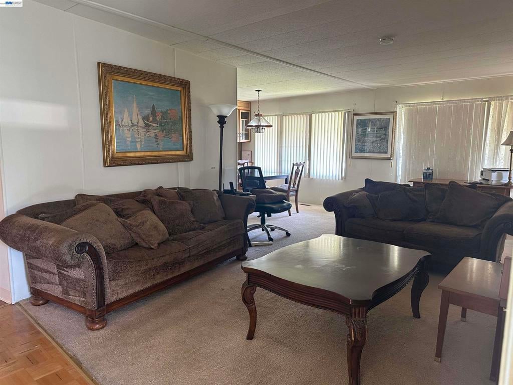 Welcome to this spacious 2-bedroom, 2-bathroom home offering 1,368 sq ft of living space in the highly desirable Niles Canyon Mobile Estates senior community. This home features a large open living room, dining room combo with built-in display cabinet and a generously sized family room. The covered big front porch with ramp access makes entry easy and comfortable. Additional highlights include: Covered carport; Large storage shed; Rear yard; Easy walking distance to the clubhouse and pool. Monthly space rent is $1,279.25. This includes water/sewer, basic cable tv and trash. Residents of this welcoming 55+ community enjoy a variety of amenities, including: Year-round heated swimming pool; Spa and sauna; Billiard room; Community clubhouse; Regular social activities and events. Ideally located just minutes from the charming shops, restaurants, and historic attractions of Downtown Niles, this home offers the perfect combination of comfort, community, and convenience. No occupants younger than 50 years old. Fireplaces: NO