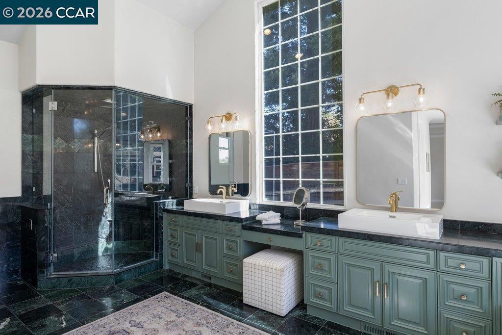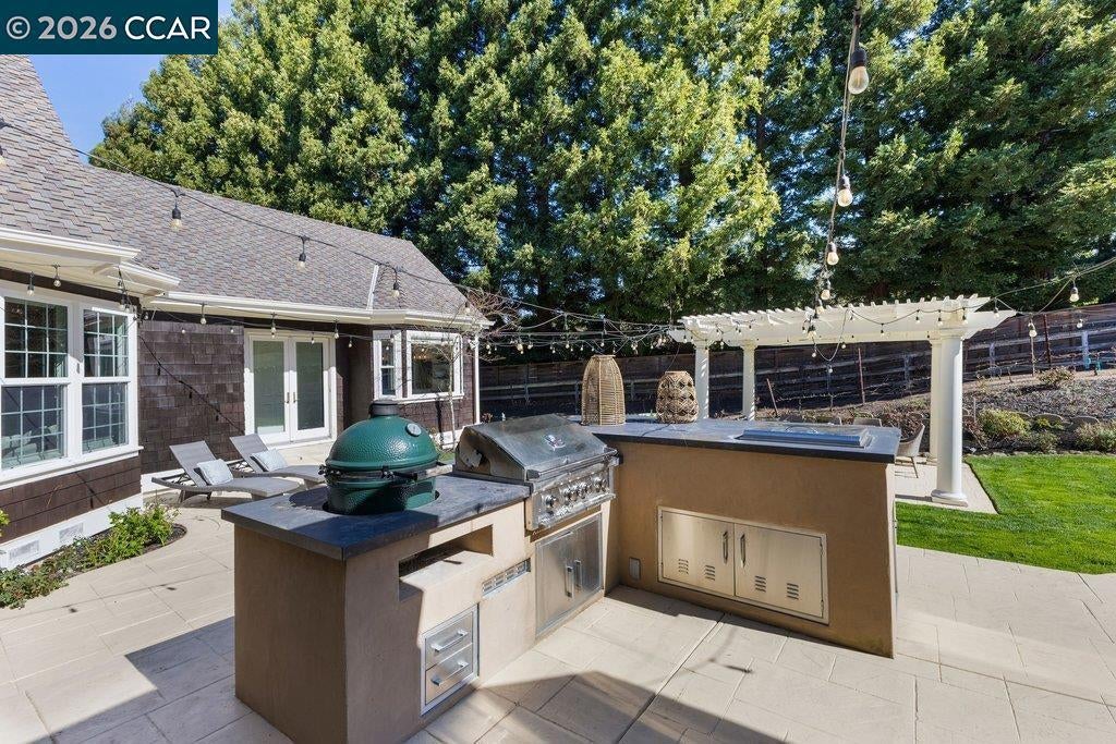 Tucked away on a secluded nearly 1-acre lot, this exceptional SINGLE-story estate home offers a rare combination of privacy, space, & refined living. The 5 bed/5 bath property features beautiful custom millwork, volume ceilings, hardwood floors, natural light and thoughtfully designed living spaces & floorplan throughout. An expansive great room with a striking stone fireplace and French doors open seamlessly to the backyard, creating an ideal setting for indoor-outdoor entertaining. The spacious primary suite offers a peaceful retreat with a private sitting area. The chef’s updated kitchen is equipped with an oversized island, quartz counters, high end appliances, & pantry. Formal living, dining, 3 additional bedrooms & baths, an office, & laundy room complete the main house.The outdoor space includes a built-in kitchen, patios, putting green, lawn with room & prepped for a pool. The producing cabernet vineyard adds a stunning backdrop to the property. Car enthusiasts will appreciate 2 garages with room for 5 cars. The ADU includes a bedroom, kitchen & bathroom, ideal for guests, extended family, or potential rental income. Conveniently located just minutes from local shops, restaurants, freeway access, shopping, & in the highly rated San Ramon Unified School District.