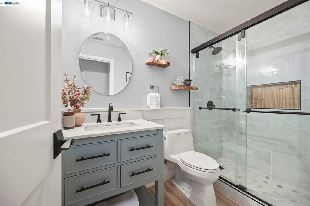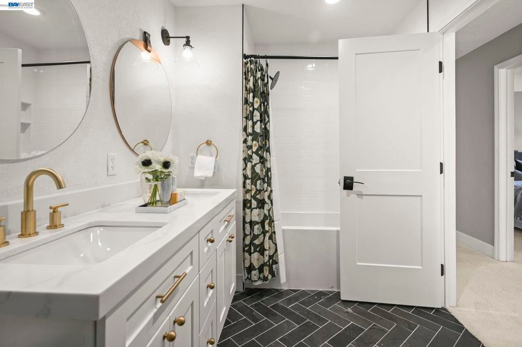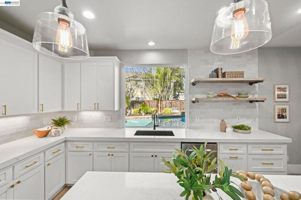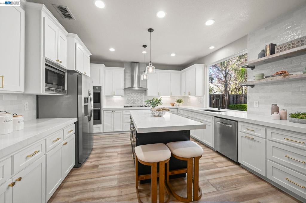 The BEST priced, fully remodeled home in Danville! Beautiful home blending modern luxury with thoughtful craftsmanship. Featuring high-end finishes throughout, this turnkey residence offers exceptional indoor-outdoor living. The remodeled kitchen shines with an oversized island, quartz countertops, designer backsplash, upgraded appliances, custom drawer features, and a picture window for abundant natural light. Designer lighting, updated flooring, newer carpet, solid-core doors, upgraded hardware, mirrored closet doors, and new baseboards create a cohesive, modern feel throughout. The flexible floor plan includes a full bedroom and bath downstairs with a walk-in shower—ideal for guests or multi-generational living. Upstairs, the primary suite retreat features an electric fireplace and a bonus alcove perfect for an office, reading nook, or fitness space. Remodeled bathrooms showcase luxury finishes, including an expanded hall bath with walk-in shower and separate tub. The refreshed laundry room and updated stair railing add both style and function. The professionally redesigned backyard offers an outdoor kitchen and living area, low-maintenance turf, extended paved entertaining space, pool and spa—perfect for year-round enjoyment. Extensively upgraded and move-in ready!