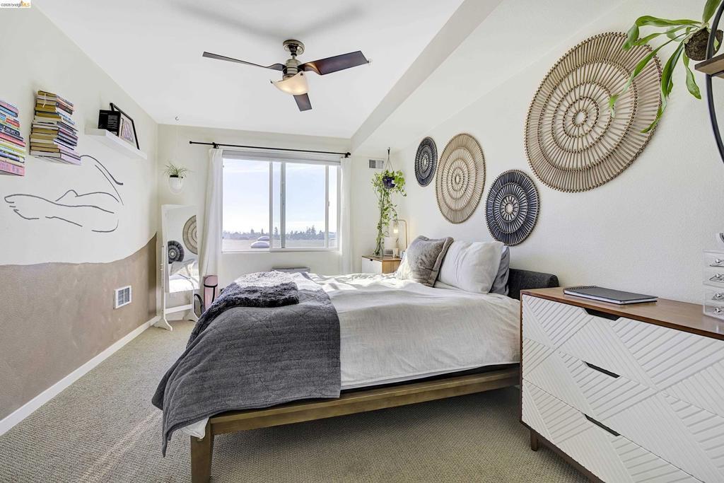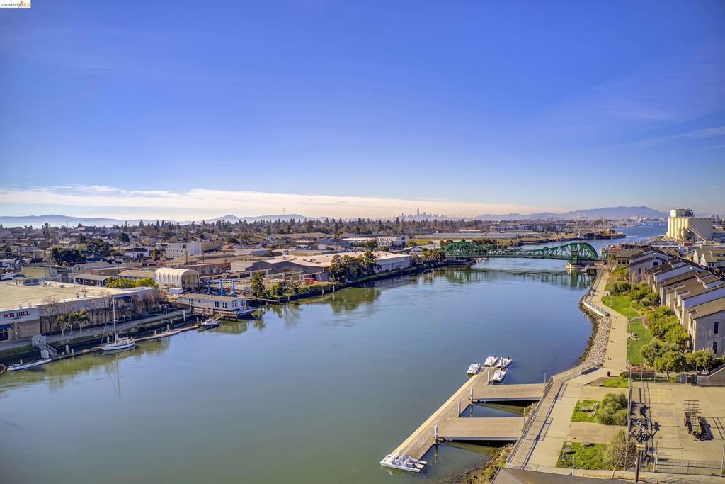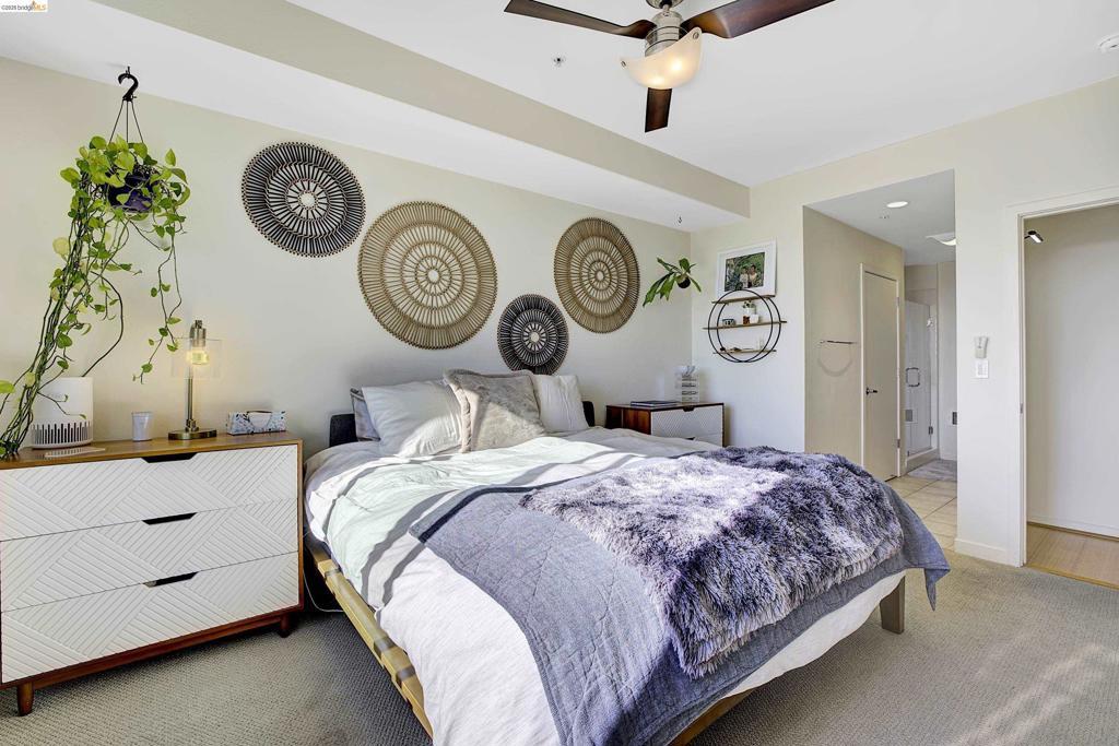 Beautiful top-floor condo flooded with natural light! Built in 2005, this 1,133 sq. ft. open-concept home features high ceilings, a private balcony, and 2 bedrooms plus 2 bathrooms. Enjoy the convenience of one assigned parking space in the garage with EV charging and in-unit full-size laundry. The spacious living room with bamboo floors flows into a large modern kitchen with stainless steel appliances. A flexible area off the kitchen is perfect for a dining space or home office/den. The primary suite includes a walk-in closet and an en-suite bathroom. Building amenities include two elevators with direct garage access and an onsite fitness gym. The building is also wired for high-speed options including Webpass (Google Fiber), DirectTV, and Comcast. Harborwalk is situated in Oakland's vibrant Waterfront District, near the Park Street Drawbridge to Alameda with its shops and restaurants. The condo offers easy access to Highway 880 and is close to Fruitvale BART and Transbay bus routes.