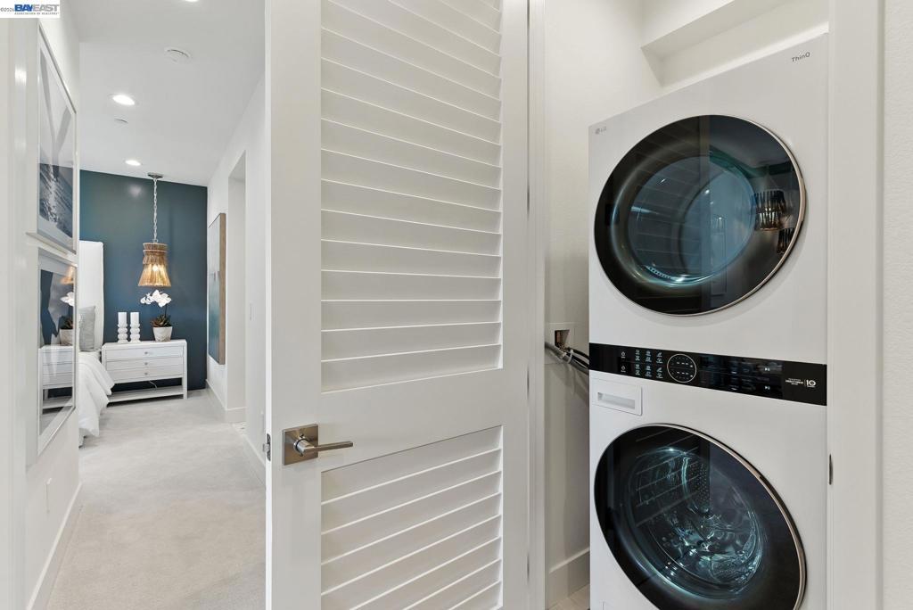 Homesite 68 at Skyline by Trumark Homes offers a thoughtfully designed four-level layout with 1,809 sq. ft. of modern living space and is move-in ready! Upon entry, you’re welcomed by a flexible entry space and a convenient powder room. The main level showcases a modern kitchen with white cabinets, granite slab countertops, a spacious prep island, and a premium Bosch induction appliance package for efficient, high-performance cooking. The kitchen seamlessly connects to the dining area and great room, which opens to a private deck—perfect for everyday living or entertaining. Upstairs, the primary bedroom features an en-suite bathroom and walk-in closet, joined by a secondary bedroom, full bath, and laundry area. The rooftop deck offers stunning views of San Francisco, the Bay Bridge, and Downtown Oakland, complete with a dry bar ideal for entertaining. Throughout the home, you’ll find upgraded finishes including LVP flooring, carpet in the bedrooms, a tile backsplash, and premium Kohler fixtures. *Representative photos added. Views: Downtown