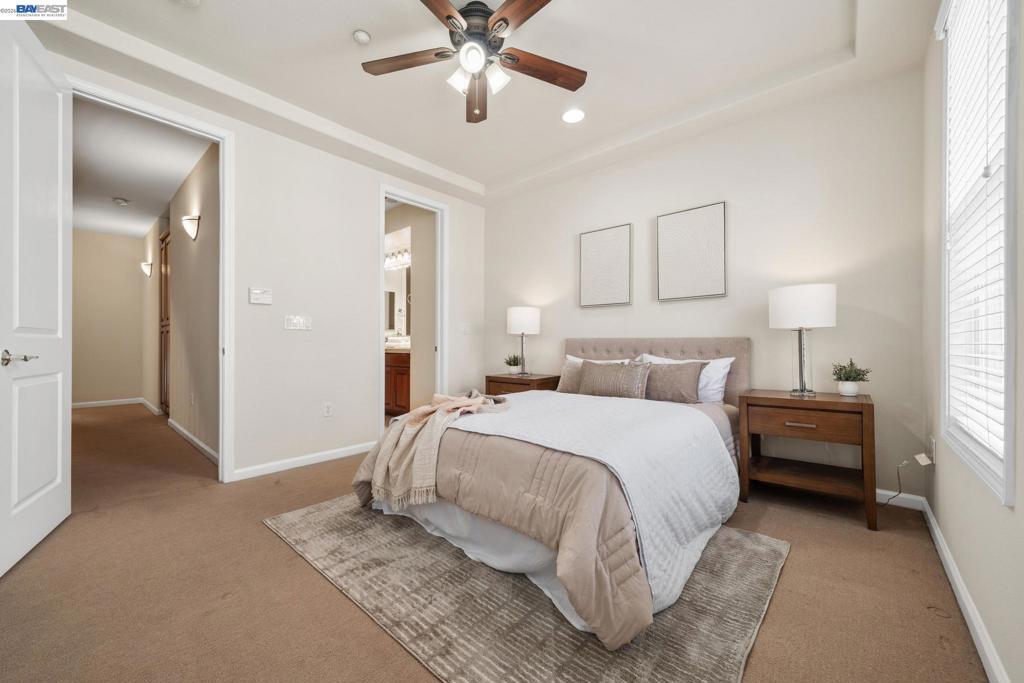 New price! Welcome to this beautifully designed townhouse-style condominium offering the comfort and privacy of a single-family home. With its own private entrance and attached garage, this residence blends convenience with modern living. The home features three spacious bedrooms, each with its own en-suite bathroom, providing ideal privacy for family members or guests. The main living level showcases an open kitchen, dining, and living area, complemented by a convenient powder room for visitors. Step outside to the inviting front porch, a perfect spot for urban gardening, enjoying morning coffee, or setting up a barbecue grill while relaxing in the neighborhood atmosphere. Residents enjoy a low HOA fee while benefiting from wonderful community amenities including a pool and clubhouse. The location is exceptional—situated next to new Emerald High School and a nearby neighborhood park. The home is also within walking distance to shops and restaurants, with easy access to major freeways for commuting. Outdoor lovers will appreciate the short stroll to Emerald Glen Park, known for its vibrant community events and popular farmers’ market. A rare opportunity to enjoy comfort, convenience, and an active community lifestyle in one of Dublin’s most desirable locations.