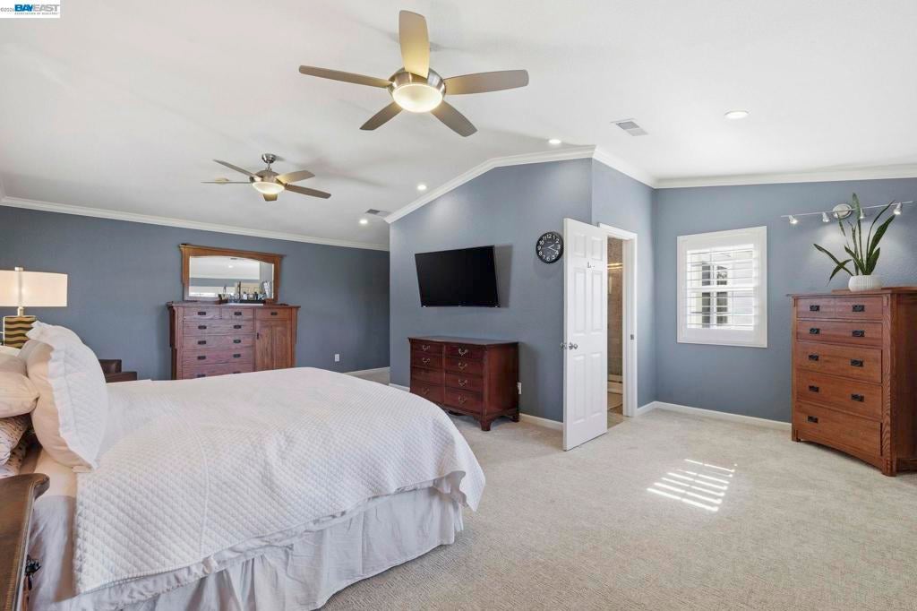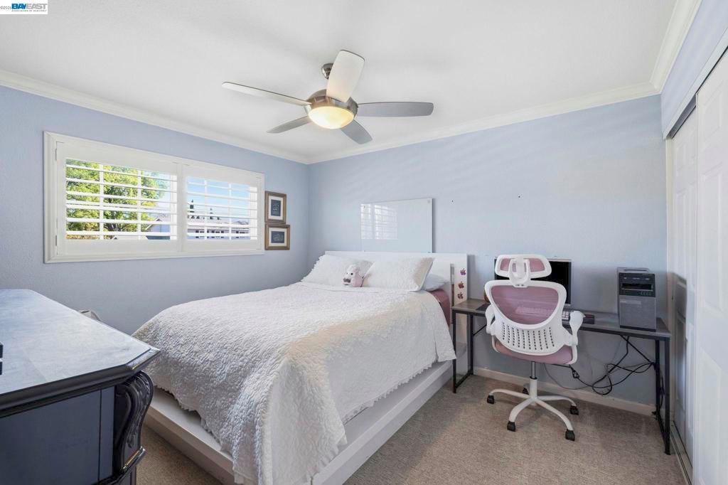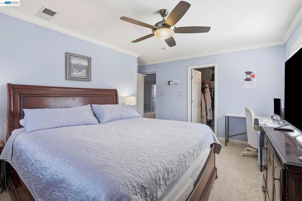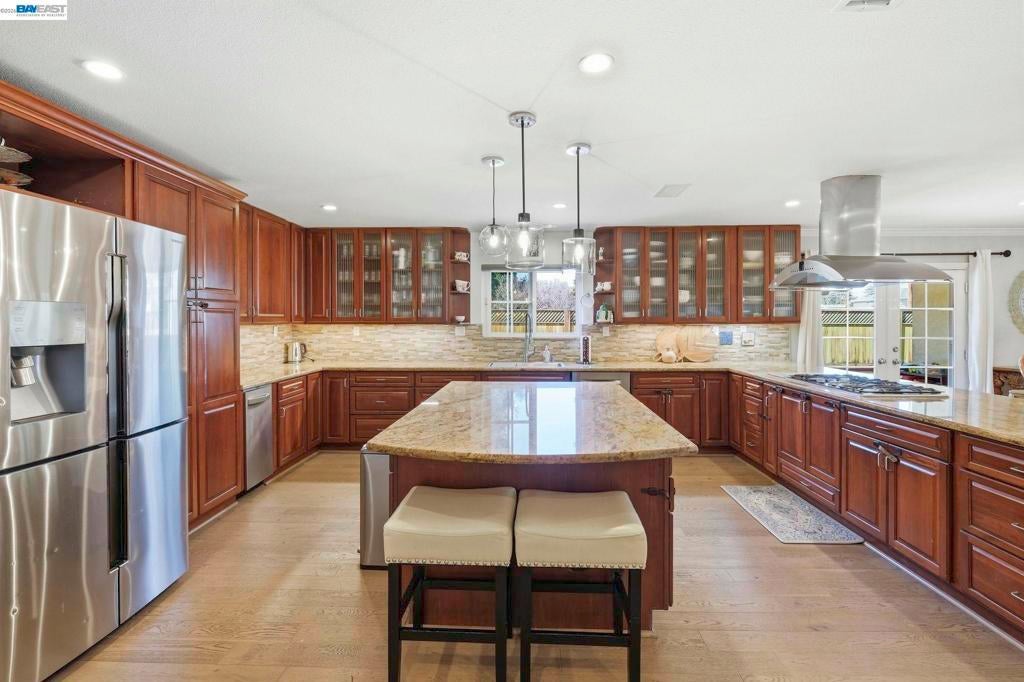 Beautifully upgraded home located in a highly desirable neighborhood with indoor and outdoor improvements! Updates include remodeled bathrooms, elegant French Oak flooring, newer carpeting, fresh interior paint, recessed LED lighting, stylish ceiling fans and chandeliers, and a brand-new roof & HVAC system with updated ducting. Smart home features include keyless entry, automated blinds and patio louvers, and a Ring doorbell. Home boasts 13.6 KW solar panels for energy saving! This spacious 3,894 sq ft home offers 5 bedrooms and 4 full bathrooms, plus a versatile 10' x 16' outdoor shed ideal for a home office, studio, or hobby space. The large entertainer’s kitchen features granite countertops, a center island, newer stainless steel appliances, and a newly added beverage center with beer keg, opening to the expansive family room. The main level includes a bedroom and full bath, perfect for guests or multi-generational living. Upstairs you’ll find the primary suite, additional bedrooms, laundry room, and a huge bonus room. The backyard offers added privacy with no rear neighbors, mature fruit trees, and a low-maintenance yard with a covered patio. Conveniently located near BART, trails, and local amenities!