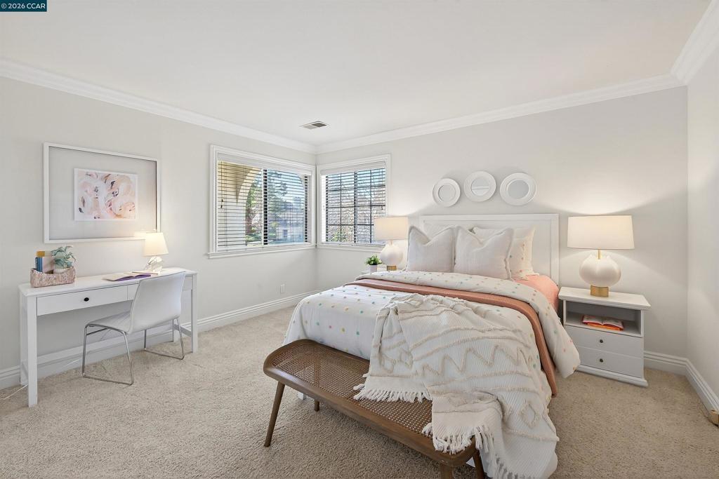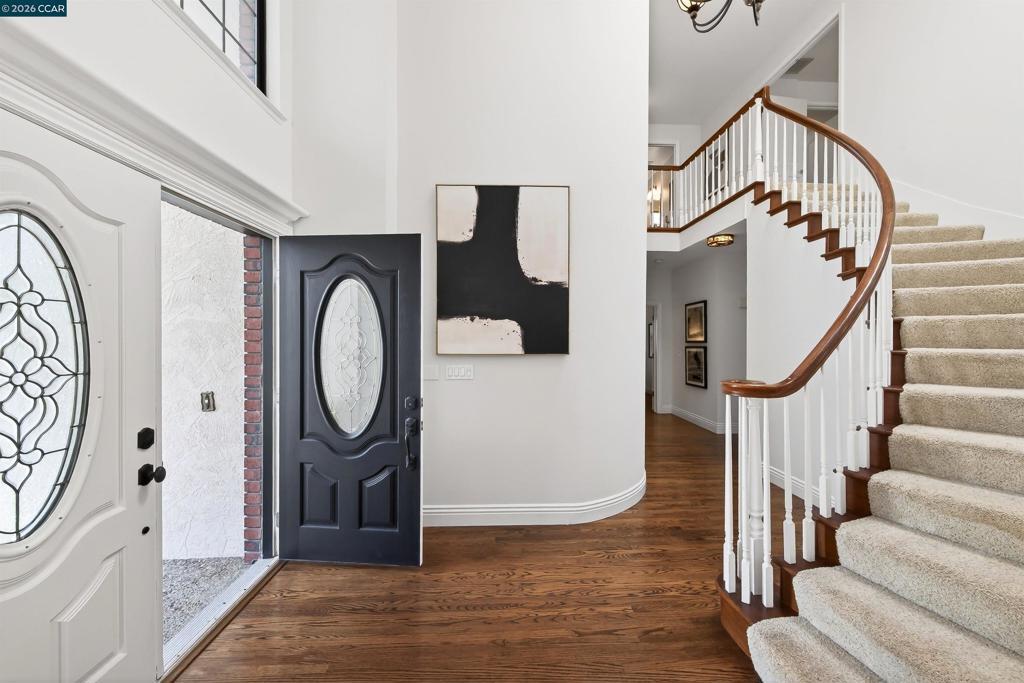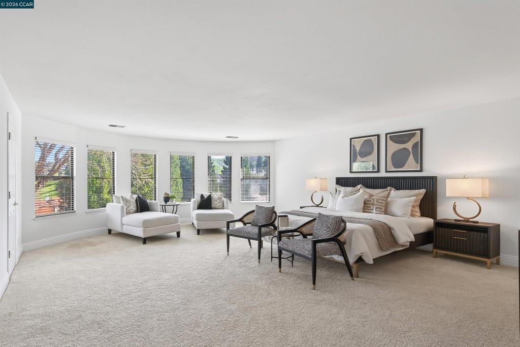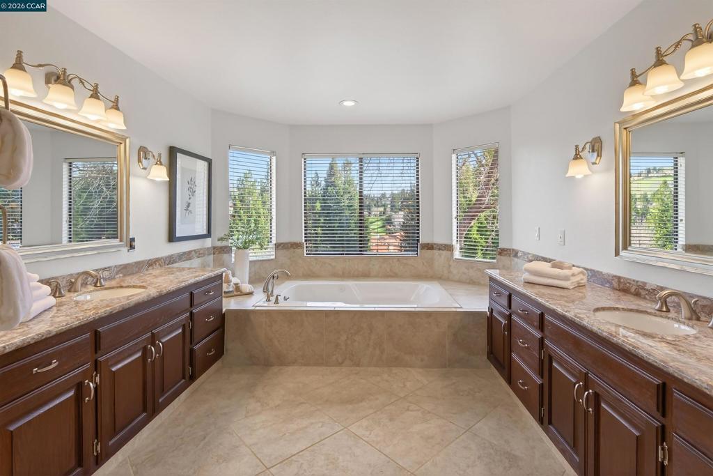 Sophisticated executive home w/captivating 180-degree hillside views, ultra-pvt setting, on coveted cul-de-sac w/in gates of the Blackhawk Country Club. 3478+/-SF. 4 bds. 3 bths. inclds main-level bd/bth. Hardwd flrs. Plush carpet. Fresh int paint. Soaring ceilings. Crown molding. Recessed lights. Abundant natural light. Elegant foyer. Step down living rm w/frt-facing bay wndw, gas frpl. Formal dining rm w/vaulted ceiling, built-ins, slider to bkyd. Chef’s kitchen. Granite counters. Subway tile bksplsh. Island/bkfst br. Walk-in pantry. Stainless appls incld Bosch dishwasher, cooktop, microwave, dual Electrolux ovens, GE frig. Expansive casual dining area open to family rm w/frpl, built-ins, walk-around wet bar. 2 sliders open to bkyd sanctuary. Deck, flagstone patio, gas firepit, built-in benches, garden bds, rose garden, towering shade tree & unobstructed views. Primary suite w/view sitting area, walk-thru closet & reach-in closets. Updated en suite w/dual vanities, jetted tub. 2 bdrms w/walk-in closets share updated bth w/dual-sink vanity, tub/shwr. Leased SOLAR. 3-car garage. Dual HVAC. Laundry rm w/new flr, sink, w/d. Near 2 championship golf courses, tennis/pickleball cts, clubhouses, fitness/wellness ctr, Sprts Complex. Blackhawk Plaza, downtown, frways, top-rated SRVUSD.