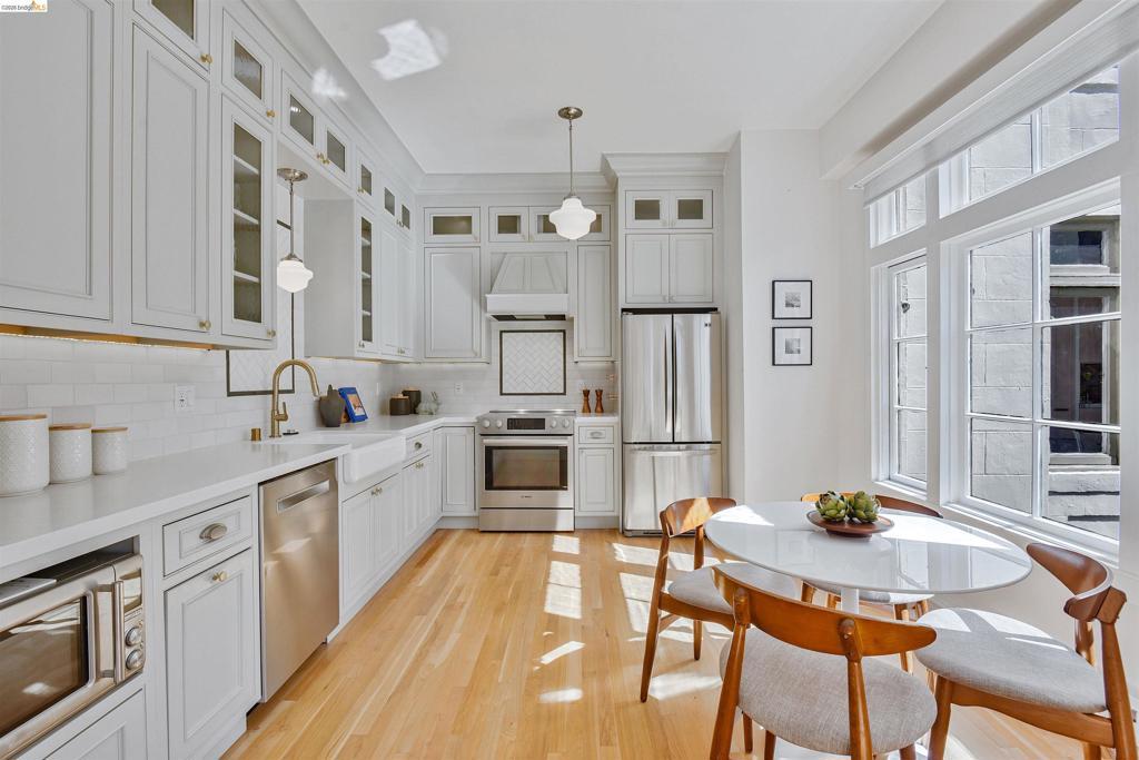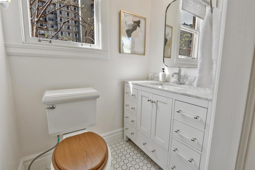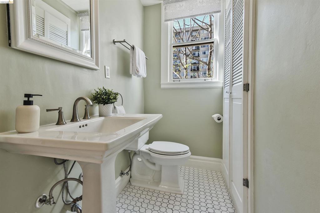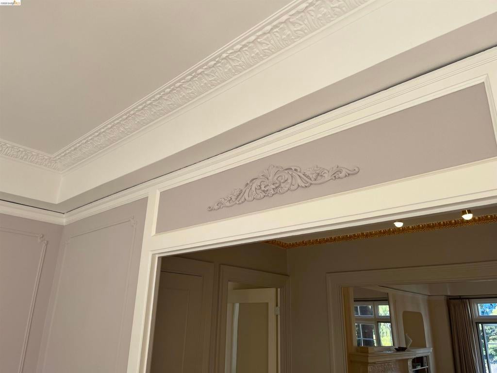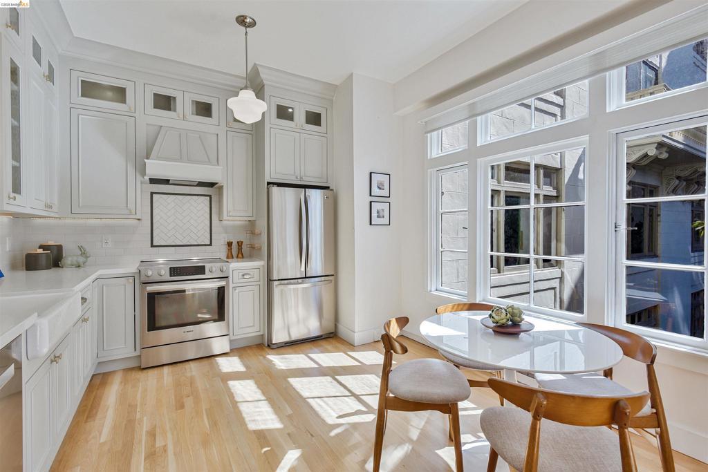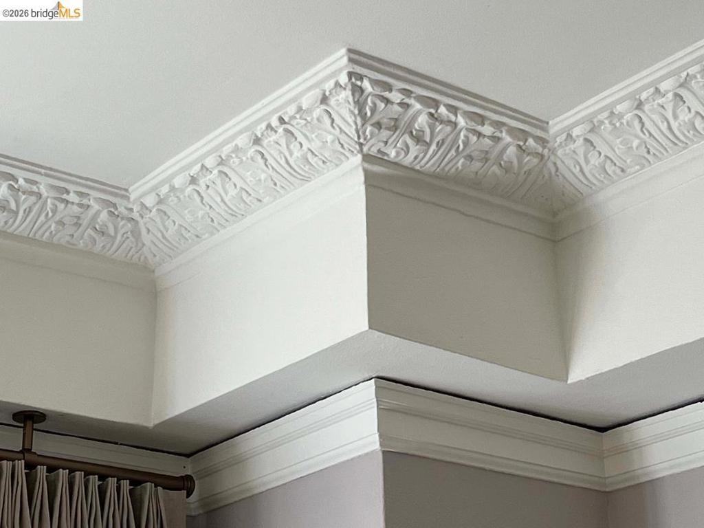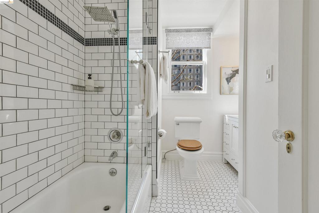 The Regillus is a 1920s Beaux Arts luxury condo building on Lake Merritt. The grand marble lobby leads to formal gardens and terraces with sweeping views of the lake. HOA includes attendant reception desk, insurance, security with closed circuit cameras, internet and cable TV, water/sewer, trash, laundry, building management, maintenance and cleaning staff. Close to Whole Foods, Trader Joe's and a 5-minute walk to BART. This spacious 2-bedroom, 2 bath 1379 sqft condo features 10 ft ceilings and has been renovated preserving ornate detail with four vintage deco crystal chandeliers. A marble foyer leads into the spacious formal living room with grand, wood-burning fireplace. To the left is a formal dining room. The large, renovated custom kitchen has quartz counters, herringbone backsplash, and custom soft-close cabinetry. Bathrooms have been renovated yet still honor the original 1920s period. Updated electrical panel. This elegant condo features refurbished, white oak hardwood floors with original, large multi-paneled windows on three sides of condo letting in lots of light. Custom window coverings include Belgium linen curtains and motorized black out shades. Includes one garage parking space and private storage room.