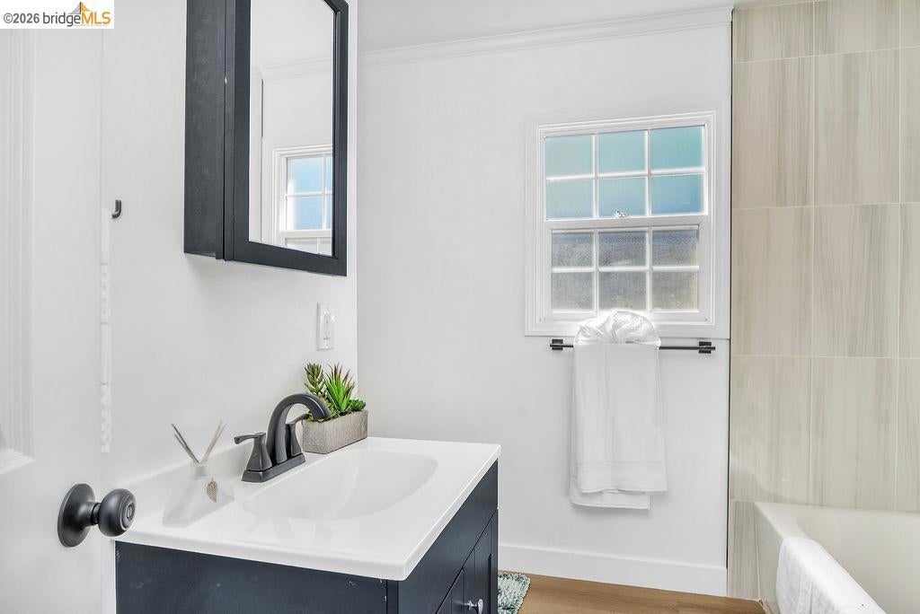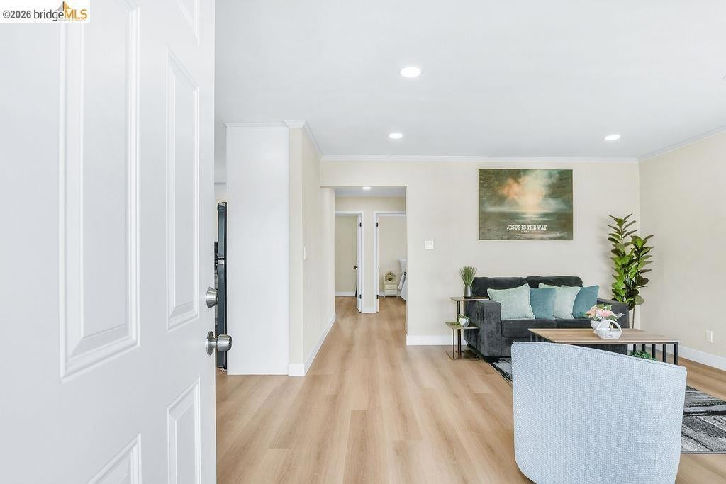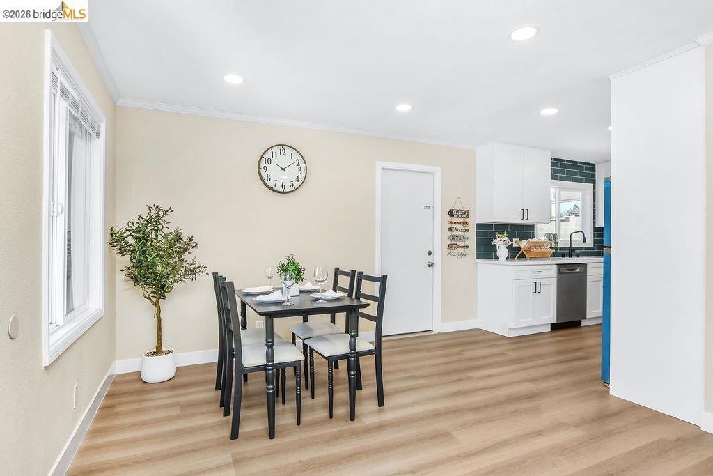 Beautifully fully renovated 2-bedroom, 1-bath California bungalow offering 936 sq ft of living space on a spacious 5,662 sq ft lot in Vallejo. This move-in-ready home features a bright open living and dining area with luxury vinyl plank flooring, recessed lighting, and modern finishes throughout. The stunning updated kitchen showcases white shaker cabinetry, quartz countertops, stylish green subway tile backsplash, and stainless steel appliances. The remodeled bathroom features a modern vanity and elegant tiled shower surround. Both bedrooms are generously sized with ceiling fans and natural light. Additional highlights include mini-split heating and cooling, an attached one-car garage, bonus lower-level flex space ideal for office, gym, or storage, and RV parking with extended driveway access. The large backyard with mature fruit tree offers plenty of space for gardening, entertaining, or potential expansion. Conveniently located near shopping, schools, parks, and commuter routes, this beautifully updated home offers comfort, style, and versatility.