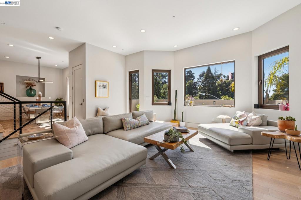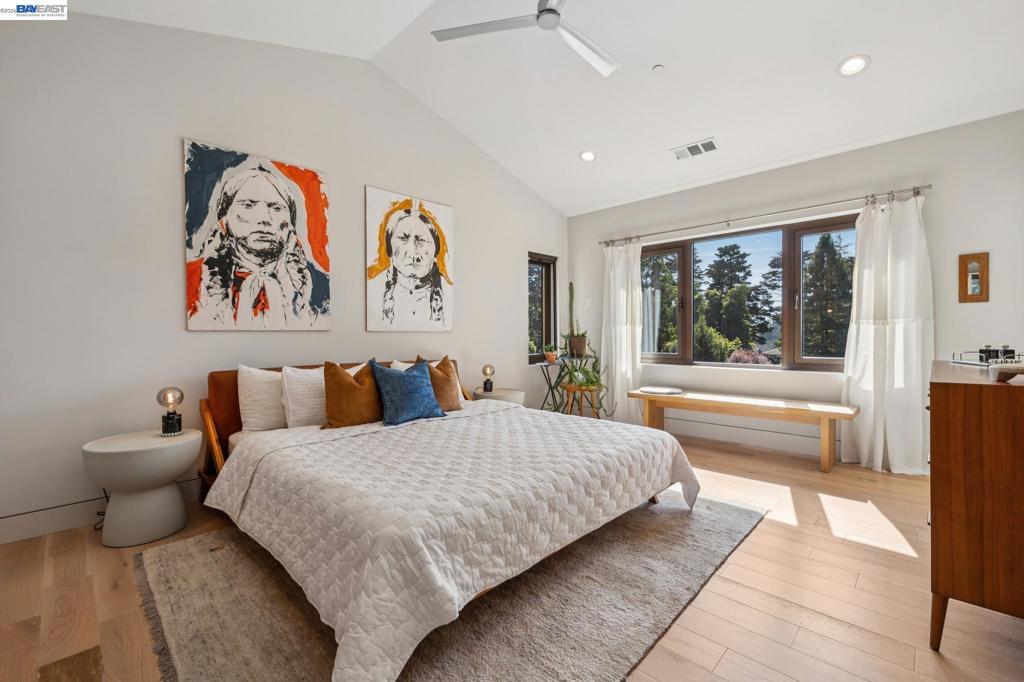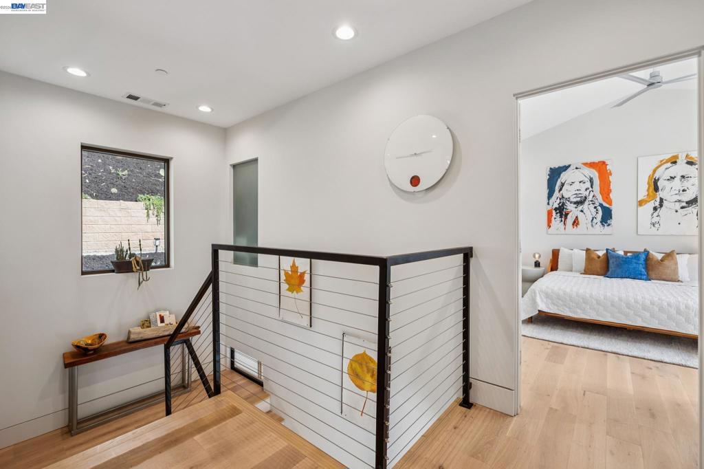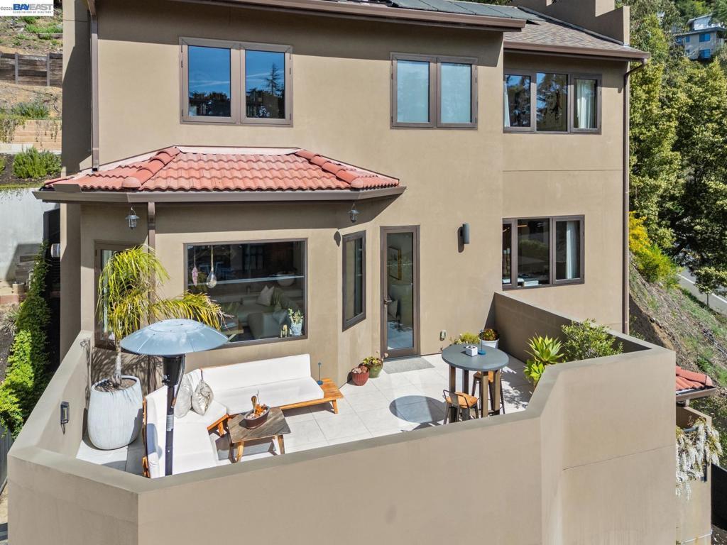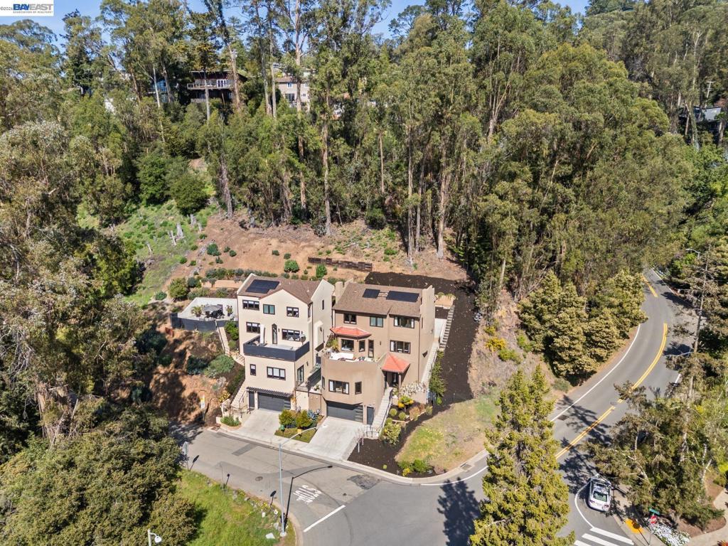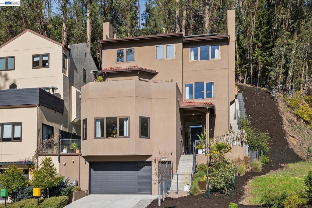 Transparent pricing! Exquisite contemporary in Piedmont Pines neighborhood of the Oakland Hills. Built in 2021, this modern home offers sophisticated design, luxurious finishes, & seamless indoor-outdoor living surrounded by the natural beauty of the East Bay hills. The home features 4 bedrooms & 3.5 bathrooms across multiple levels. The entry level includes a spacious en suite bedroom-ideal for multigenerational living, office, gym, or studio. With its own entrance, patio, & pre-installed plumbing & electrical for a future kitchen, the space also offers ADU potential. The main living level features a chef’s kitchen with premium appliances, built-in refrigerator, designer backsplash, & large island that flows into the dining area. The living room with gas fireplace opens to a balcony overlooking treetops, perfect for outdoor dining. A BBQ patio & bonus family room provide additional entertaining space. The primary suite offers dual vanities, soaking tub, stall shower, & spacious closets. Additional highlights include a 2-car garage with workshop area, EV charging, elevator access, smart home technology, 3-zone climate control, tankless water heater, & owned solar. Conveniently located near Montclair Village, schools, parks, & Highway 13 & 24. Plus, a closing cost credit to buyers