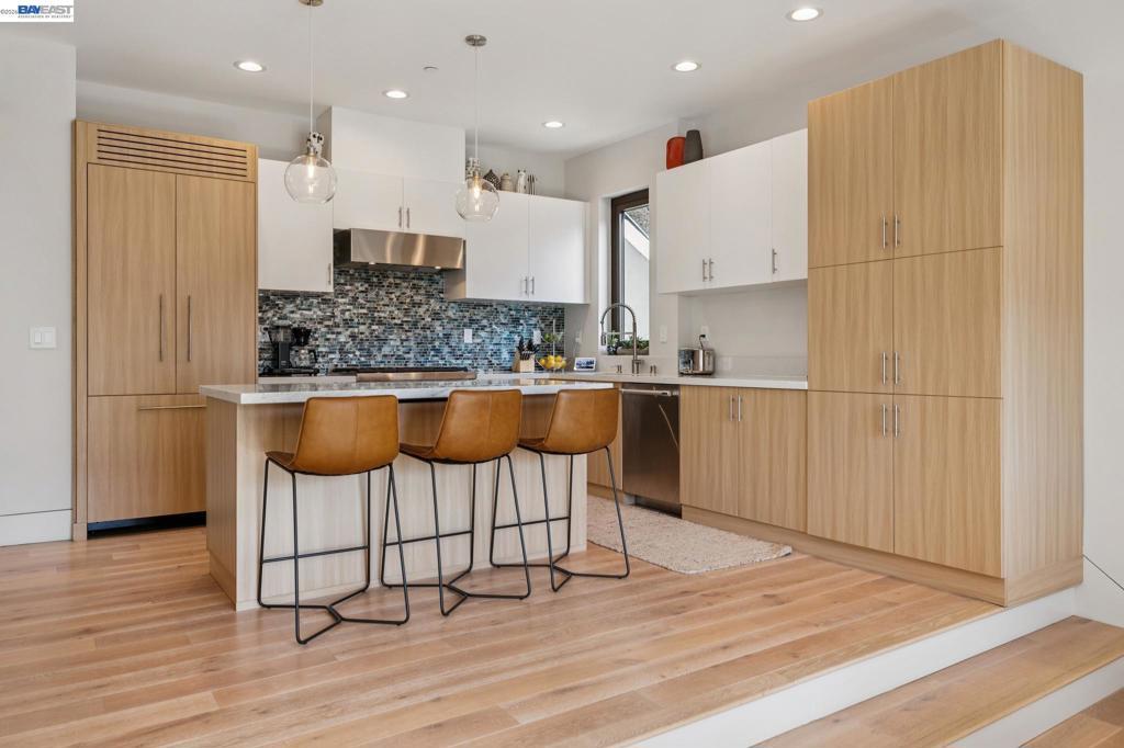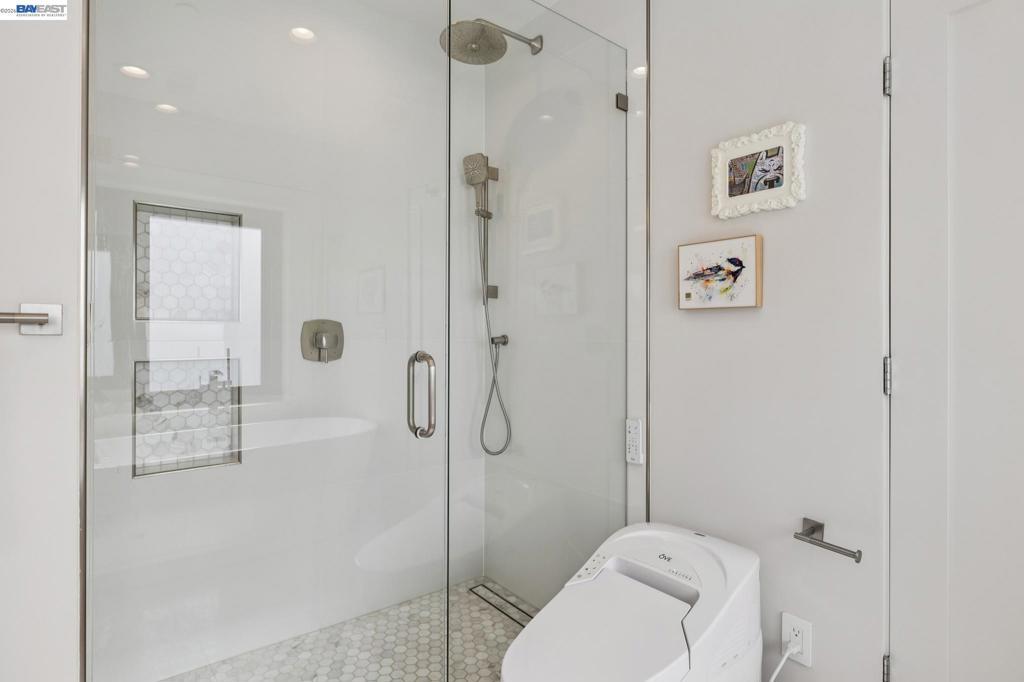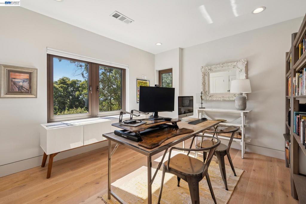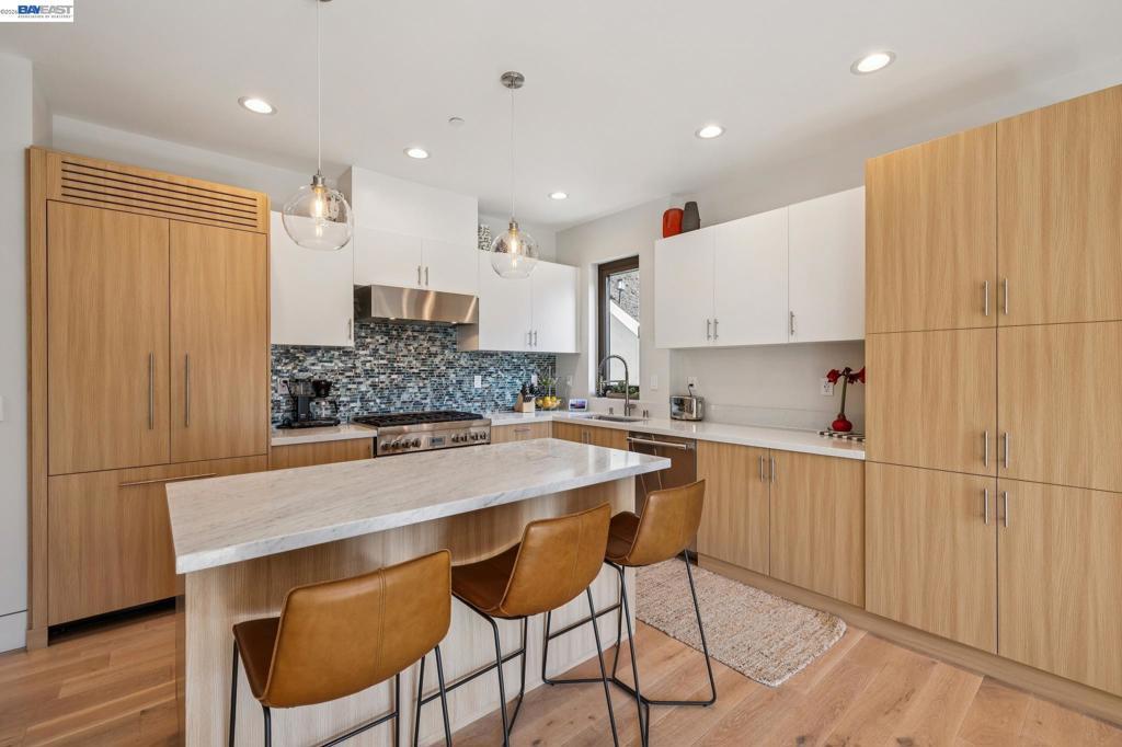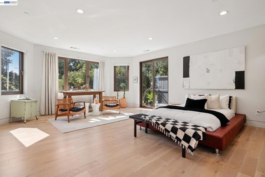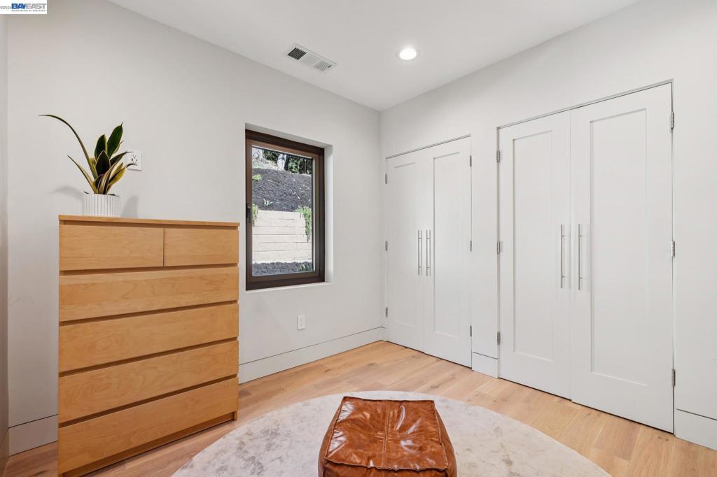 Transparent pricing! Exquisite contemporary in Piedmont Pines neighborhood of the Oakland Hills. Built in 2021, this modern home offers sophisticated design, luxurious finishes, & seamless indoor-outdoor living surrounded by the natural beauty of the East Bay hills. The home features 4 bedrooms & 3.5 bathrooms across multiple levels. The entry level includes a spacious en suite bedroom-ideal for multigenerational living, office, gym, or studio. With its own entrance, patio, & pre-installed plumbing & electrical for a future kitchen, the space also offers ADU potential. The main living level features a chef’s kitchen with premium appliances, built-in refrigerator, designer backsplash, & large island that flows into the dining area. The living room with gas fireplace opens to a balcony overlooking treetops, perfect for outdoor dining. A BBQ patio & bonus family room provide additional entertaining space. The primary suite offers dual vanities, soaking tub, stall shower, & spacious closets. Additional highlights include a 2-car garage with workshop area, EV charging, elevator access, smart home technology, 3-zone climate control, tankless water heater, & owned solar. Conveniently located near Montclair Village, schools, parks, & Highway 13 & 24. Plus, a closing cost credit to buyers
