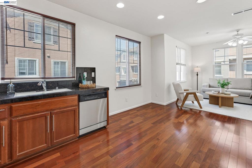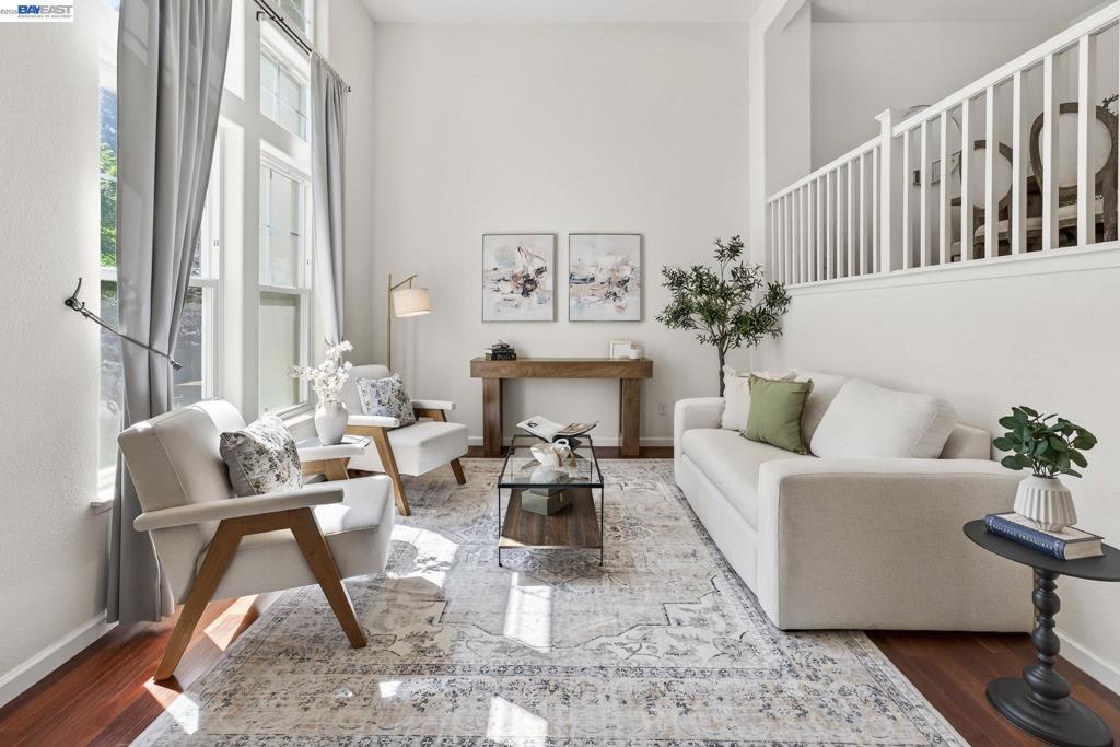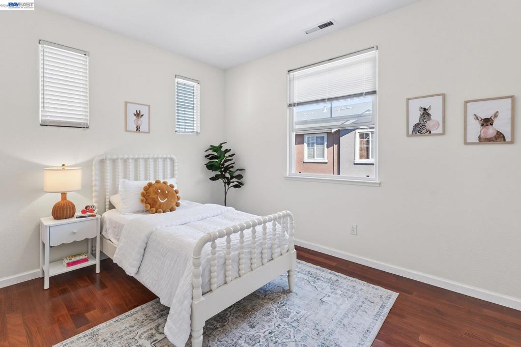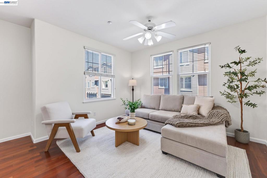 North-East facing corner unit in the highly sought-after Sequoia Crossings community. Desirable corner residence. Offers enhanced privacy, extra windows for abundant natural light, and superior cross-ventilation for a refreshing "feel-good" atmosphere. This exceptionally spacious 3-bedroom, 2.5-bathroom home spans 1,864 sq. ft. and features elegant hardwood floors throughout the home. The primary suite is a true sanctuary, offering a massive layout with vaulted ceilings, significant closet space, and a private window into the local landscape—from here, you can overlook the community kids' park and enjoy breathtaking views of Mission Peak. For additional storage, the home also includes a large, accessible storage area. Skip the stress of the I-880 commute! Located just minutes from the Fremont ACE Station, you can enjoy a seamless 20-minute train ride directly into Silicon Valley. Fremont BART and major tech hubs like Meta and the Tesla Fremont Factory are also just a short drive away. This home welcomes you with a spacious front yard adorned with a fragrant rose bush and a lemon tree. Within the community, you'll find vast green belts, garden areas, and a dedicated community garden space. Kids play area. Highly rated schools! Low HOA ($260)
