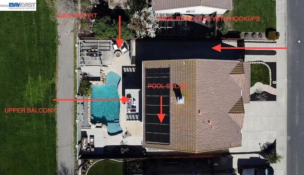 Welcome to this luxuriously upgraded EAST facing home filled with the welcoming morning light. Step inside to appreciate the fully remodeled kitchen with custom cabinetry, a farmhouse sink, double ovens, professional-grade gas range, pot filler, pantry closet, and an oversized island perfect for entertaining. The open layout flows into the spacious family room with a gas fireplace and wide plank hardwood floors, creating a warm and inviting atmosphere. The expansive primary suite offers a private balcony, large sitting area, and a spa-like bathroom with double sinks, soaking tub, and a walk-in shower with dual shower heads and bench seating. Retractable doors create seamless indoor-outdoor flow to the backyard, filling the home with natural light. Step through the expansive sliding glass doors leading to the backyard and into your private backyard retreat featuring a sparkling in-ground pool, built-in fire pit, and generous patio space for relaxing or entertaining. Sit back enjoy beautiful sunset views from the backyard, enhanced by the added privacy of NO REAR NEIGHBORS. This unique property includes ample RV STORAGE with hookups, DOUBLE SIDE YARD ACCESS, a 3-car garage with roll-up door, custom storage shed & has NO HOA!
