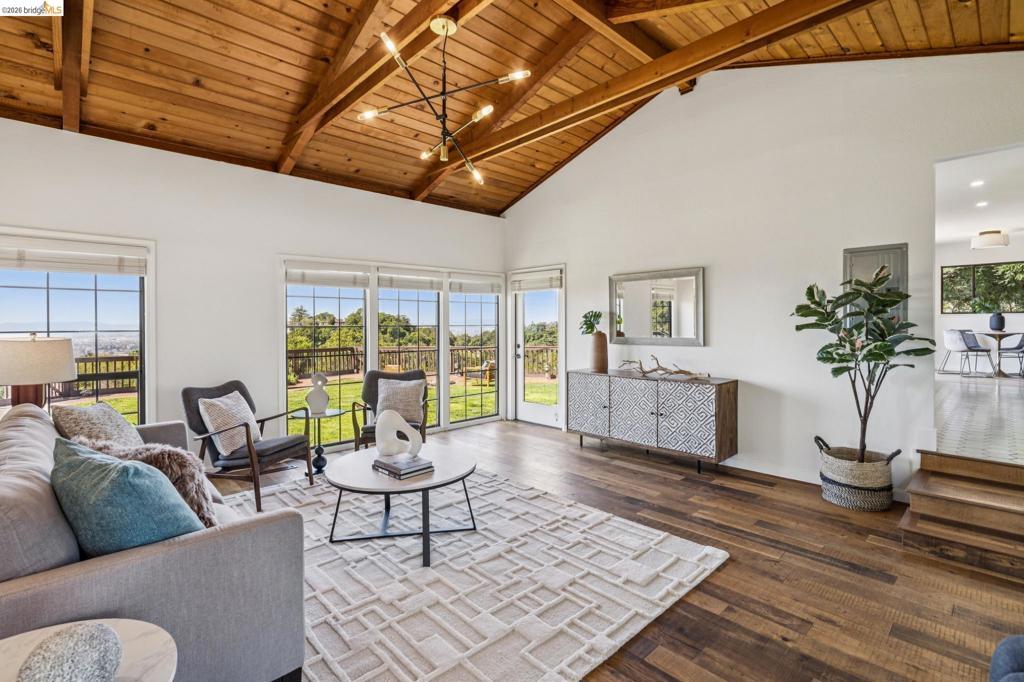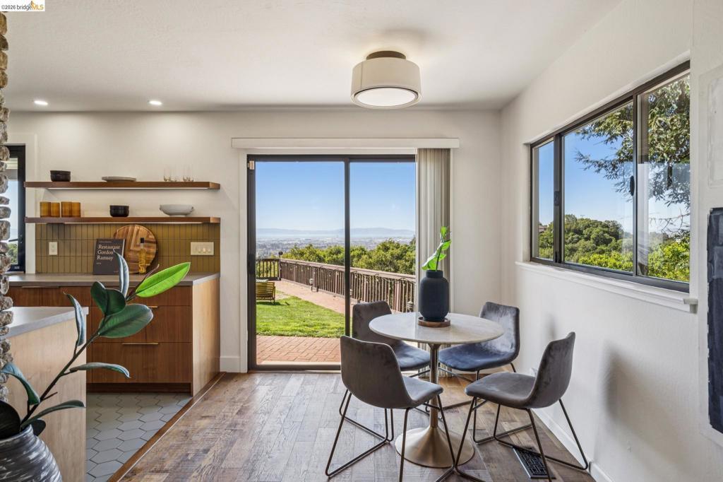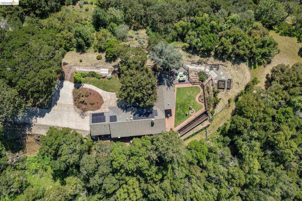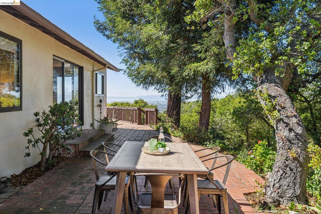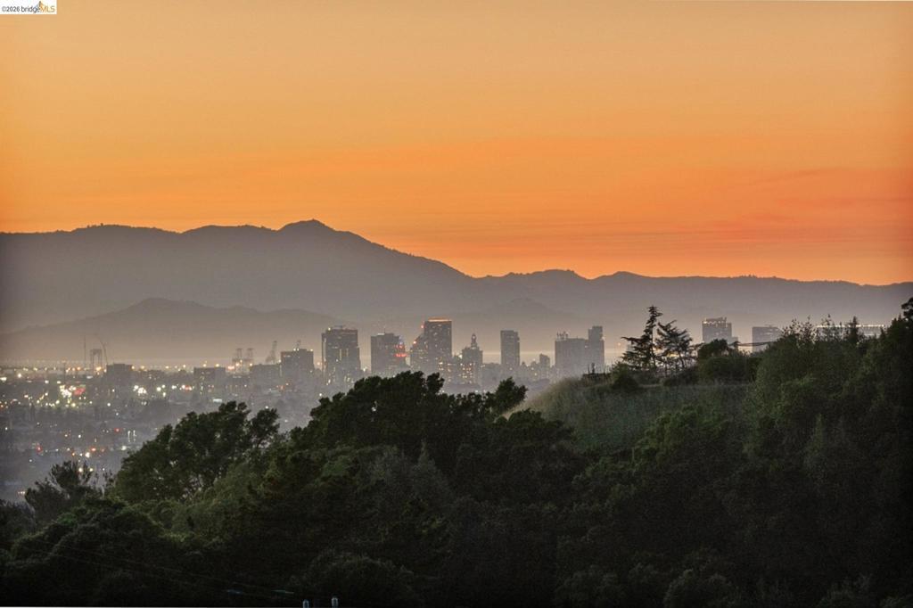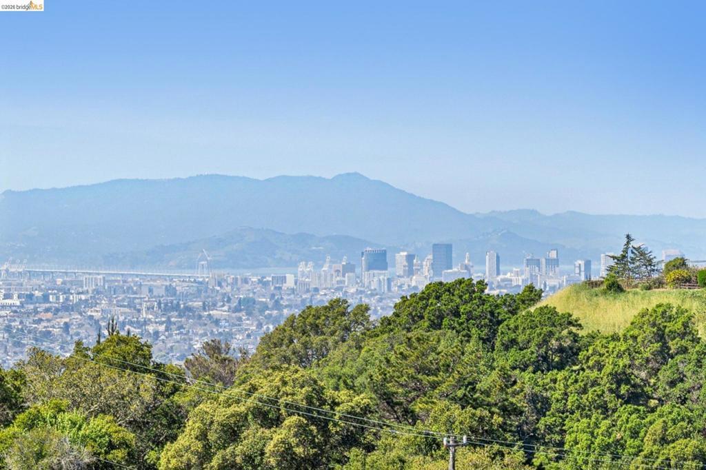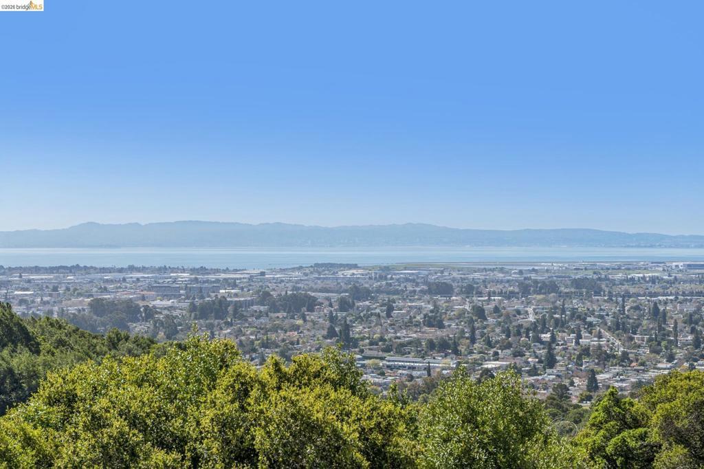 Enchanting, sweeping and glorious! This one checks all of the boxes & more; sunny, expansive views, fabulous indoor & outdoor spaces for every vision & hobby you may have! This end of the private road home is perched on an amazing rock & oak studded knoll with views & privacy in every direction. The serene sun drenched picture perfect 1.76 acre panoramic view lot has various areas to garden, develop an adu or even expand the house. Spacious 3 beds w/ 2 baths (1 en-suite primary), office & formal/informal living & dining rooms are perfect for hosting family & friends. Various exterior patios for evening BBQs & morning breakfast with level exterior areas to garden & let kids or pets roam freely. Extensive updates include but not limited: roofing, 200amp panel with owned solar/batteries, tankless water heater, HVAC with AC, newer kitchen/bathrooms, hardwood floors & all on public utilities to boot. Enjoy the scenic vignettes overlooking the hills, valleys, & bay while watching the Hawks soar & the turkeys roam. Mins to local Coffee & Tea house Charlie May, Lake Chabot & Sequoia country club, downtown Oakland, Oak Airport, East Bay regional parks & all that makes the Bay area great. Gems like this are once in a lifetime! Views: Ridge, Downtown