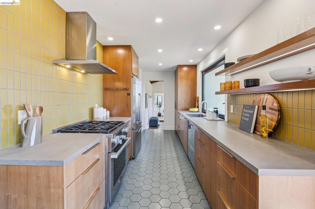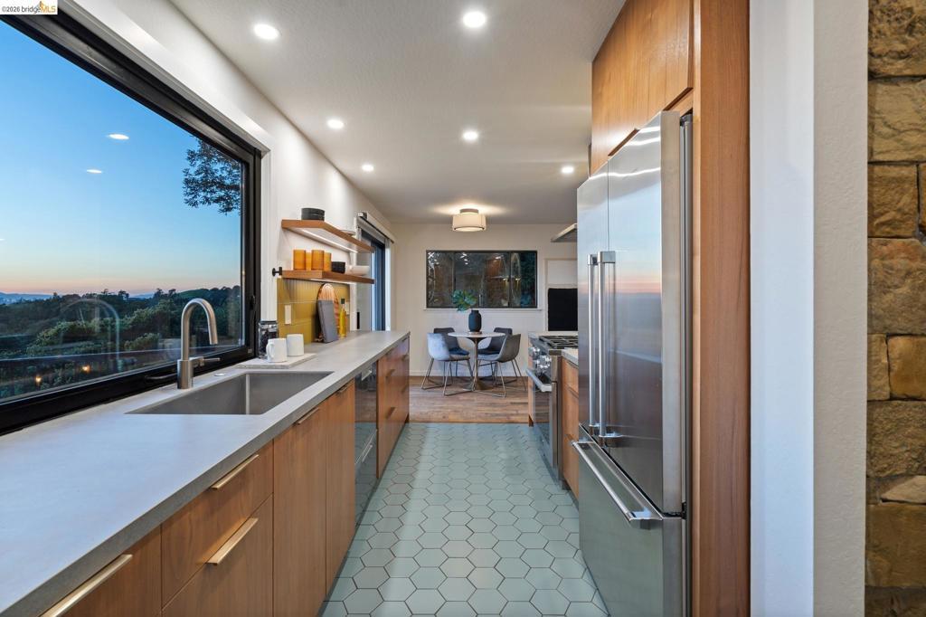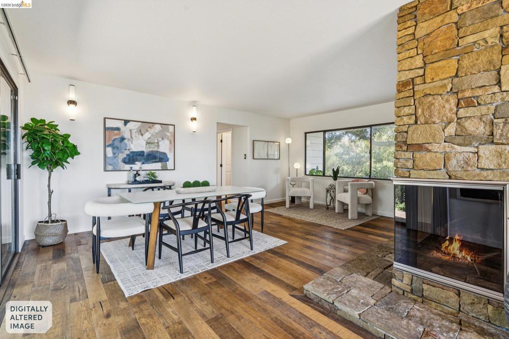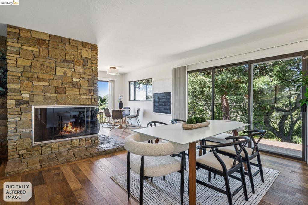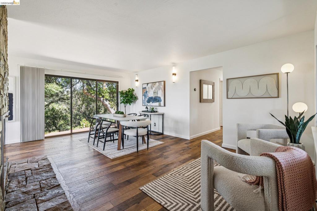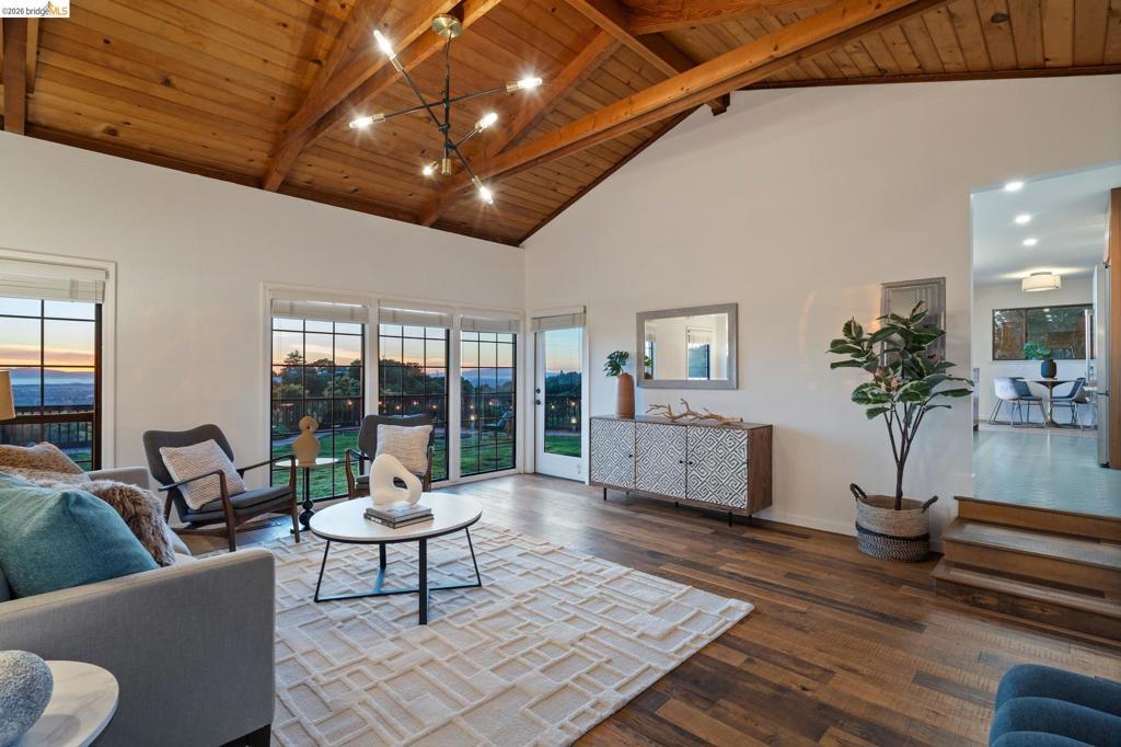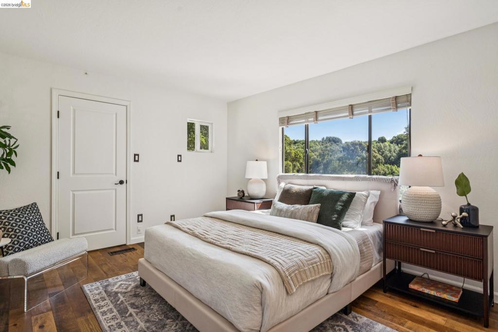 Enchanting, sweeping and glorious! This one checks all of the boxes & more; sunny, expansive views, fabulous indoor & outdoor spaces for every vision & hobby you may have! This end of the private road home is perched on an amazing rock & oak studded knoll with views & privacy in every direction. The serene sun drenched picture perfect 1.76 acre panoramic view lot has various areas to garden, develop an adu or even expand the house. Spacious 3 beds w/ 2 baths (1 en-suite primary), office & formal/informal living & dining rooms are perfect for hosting family & friends. Various exterior patios for evening BBQs & morning breakfast with level exterior areas to garden & let kids or pets roam freely. Extensive updates include but not limited: roofing, 200amp panel with owned solar/batteries, tankless water heater, HVAC with AC, newer kitchen/bathrooms, hardwood floors & all on public utilities to boot. Enjoy the scenic vignettes overlooking the hills, valleys, & bay while watching the Hawks soar & the turkeys roam. Mins to local Coffee & Tea house Charlie May, Lake Chabot & Sequoia country club, downtown Oakland, Oak Airport, East Bay regional parks & all that makes the Bay area great. Gems like this are once in a lifetime! Views: Ridge, Downtown