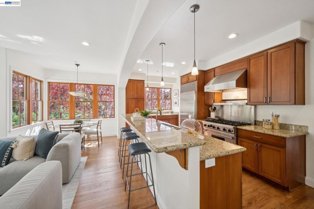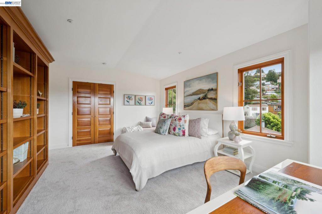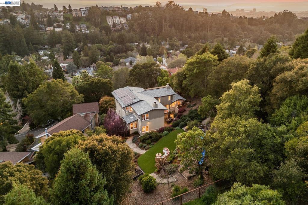 Up a private drive in coveted Glen Highlands, this expansive 5BD/3.5BA Contemporary by Jarvis Architects offers refined living with the ease of thoughtfully maintained modern construction. The 3142 sq ft home sits on .39 acres of landscaped grounds with inviting outdoor spaces. A gracious living room with arches, fireplace, and French doors opens to the patio and backyard. The circular flow leads to a spacious chef’s kitchen, informal dining area, and family room designed for gathering and indoor/outdoor living. Cook with a Viking range, Sub-Zero fridge, and Grohe fixtures while guests gather nearby, or host in the formal dining room. The backyard features level turf, winding paths, seating areas, play structure, and a small orchard of apple, clementine, persimmon, and more, protected by deer fencing. Also on the first floor: a pantry, half bath, laundry, and guest suite/office with full bath. Upstairs find four bright bedrooms with custom California Closets. The primary suite features a walk-in closet, bench seating, and split bath with soaking tub and separate shower. Additional amenities include fir details, a 2-car garage, long driveway with parking, solar, battery backup, EV charger, A/C, security system, newer roof & exterior paint, plus easy access to Montclair Village.