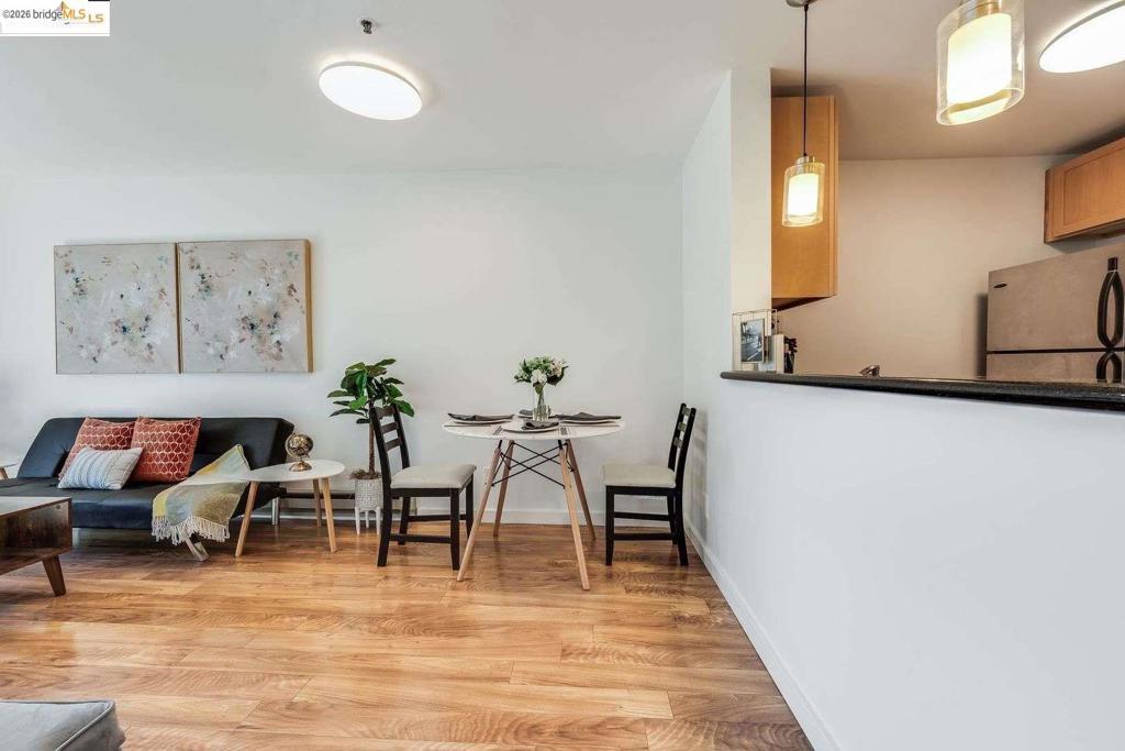 Step into a world where modern elegance meets effortless living. This stunning condo is a testament to smart design, offering a perfect blend of comfort and style. The heart of this urban oasis is the open-concept living area, bathed in natural light from large windows that frame picturesque city views. The sleek kitchen, a culinary enthusiast's dream, boasts contemporary cabinetry, stainless steel appliances, and a convenient breakfast bar - ideal for casual dining or entertaining. The cozy bedroom is a serene retreat, featuring ample closet space and large windows that create a bright, airy ambiance. The stylish bathroom, complete with modern fixtures, adds a touch of luxury to your daily routine. Throughout the condo, warm wood flooring and crisp white walls provide a neutral canvas for your personal style. This home isn't just about aesthetics - it's about lifestyle. Imagine weekends spent relaxing in your light-filled living room, or enjoying a cup of coffee on your private balcony. Located in vibrant Emeryville, you're just steps away from trendy cafes, boutique shopping, and excellent transport links. Community features include EV chargers, a pool, spa, sauna, fitness center, clubhouse and more. Don't miss this one! VA & conventional loan OK!