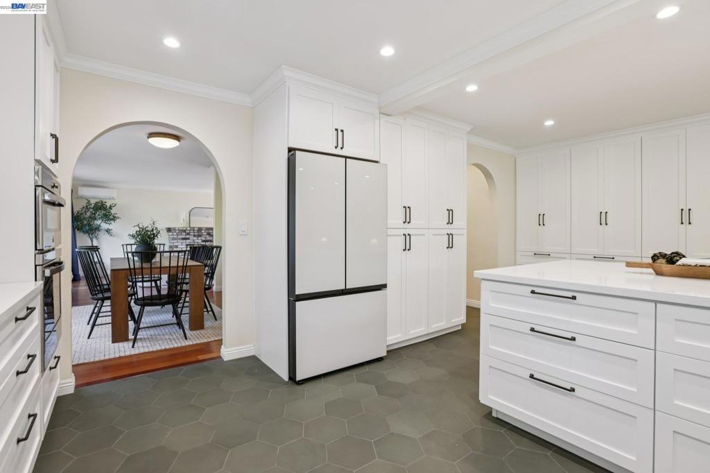 Extensively renovated Spanish Colonial on a private cul-de-sac with Mt. Diablo views in sought-after Livorna Estates. Set on an expansive lot, this beautifully reimagined Spanish Revival has been meticulously updated over the past two years with premium custom materials, designed for long-term living rather than resale. Brazilian cherry hardwood floors, graceful arches, and bespoke metalwork blend timeless character with modern comfort. The open-concept chef’s kitchen features Cambria quartz countertops, Miele and GE appliances, and custom solid maple cabinetry with exceptional storage. An oversized island flows seamlessly into the family room, creating a natural gathering space. A 200 sq ft sunlit breakfast nook addition opens to an entertainment-ready patio and private, fully fenced backyard for effortless indoor-outdoor living. A landscaped pathway leads to the upper grounds where sweeping Mt. Diablo views. Major upgrades include Mitsubishi high-efficiency HVAC with mini-split, Navien tankless water heater, upgraded insulation, renovated primary suite with office/sitting area. Don't miss the expansive level yard that is ADU ready. Walk to top-rated Alamo Elementary; SRVUSD schools including Monte Vista High. Minutes to BART, downtown Walnut Creek, parks, and trails.