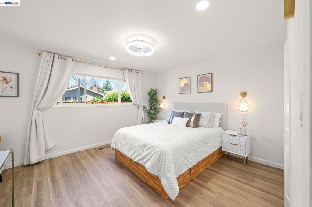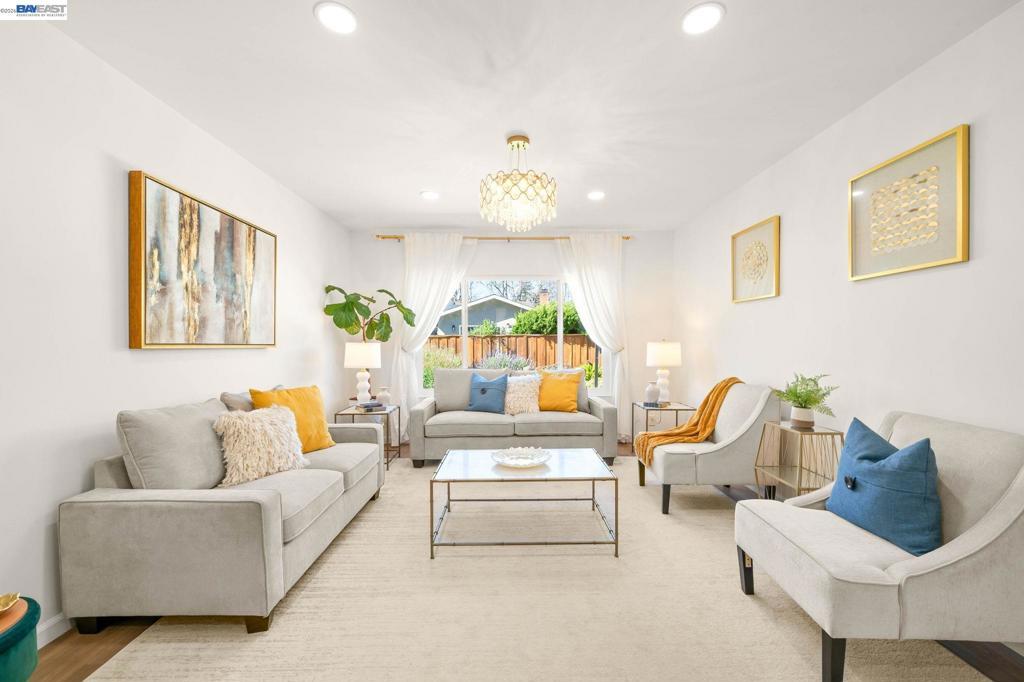 Charming single level Lake home on a large lot of approx. 8,120 sq ft offering 4 bedrooms, 2 bathrooms, and lots of upgrades. The open floorplan features a formal living room, a dining area open to the kitchen and a generous family room with fireplace, that opens to the backyard patio. The kitchen offers updated cabinetry with stone countertops and quality stainless-steel appliances including gas stove with vent, refrigerator, built-in oven and microwave, and dishwasher. Both bathrooms have been tastefully remodeled with custom designer finishes. Additional highlights include new flooring, recessed lighting throughout, dual pane windows, updated heating system with new ducting, updated water heater, and attic insulation. The house is equipped with solar panels, fully paid and grandfathered under NEM 2.0. The finished garage features updated epoxy floor, EV level 2 charging, and new laundry. Enjoy beautifully landscaped yards featuring drought tolerant plants, drip system, a gazebo, and a custom 5-hole golf putting green and a pitching area. Charming family-oriented neighborhood near Newark Lake, close to shopping and outdoor attractions including Coyote Hills Regional Park and Don Edwards Wildlife Refuge. Great commute location - easy access to 880, 84 & BART.