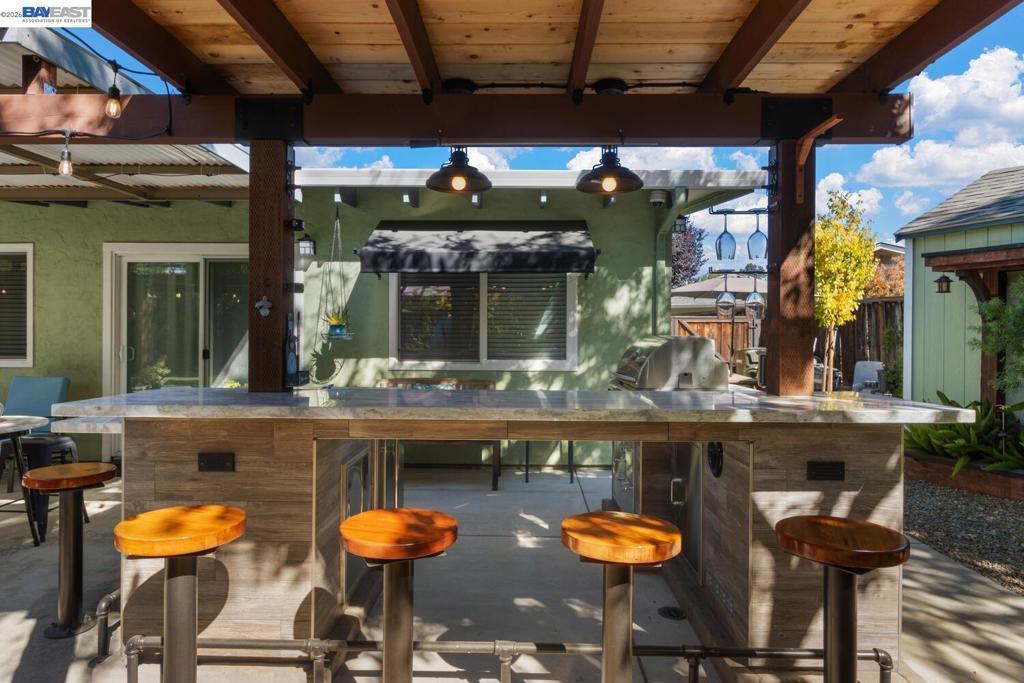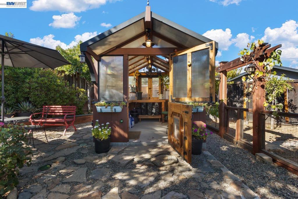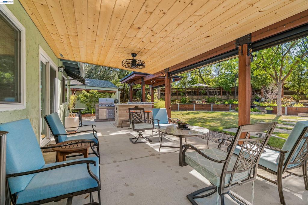 Beautifully updated and lovingly maintained 5 bed 2 bath 1889 sf home in highly desirable Sunset East neighborhood. Bright airy versatile floor plan, custom cabinetry, granite counters, closet organizers and ample storage on an expansive .28 acre low maintenance fully landscaped and sprinklered lot. Featuring partially shaded, built in BBQ with granite counter tops, refrigerator, cooler, and pub seating. Dine al fresco under the covered patio with thoughtfully placed shade trees, ceiling fans, and sunshades to keep you cool. Separate step up paved patio includes generously sized fire pit to gather by at night and water wall. Find yourself lying in a hammock from the oversized arbor in your park like setting. Established garden includes orange, plum, apricot, nectarine and lime trees with large garden boxes ready to plant. Home includes a 160 sf shop, a 120 sf custom greenhouse, both with lighting and electric. Private lot, no back neighbors, plenty of space for home expansion, a pool or ADU. (verify with City/County). Within walking distance to top rated Sunset East Elementary, Shops at The Well and Karl Wente park; a few minutes drive to downtown Livermore. Enjoy these amenities from the understated luxury and tranquility of your new turnkey home within a great community.
