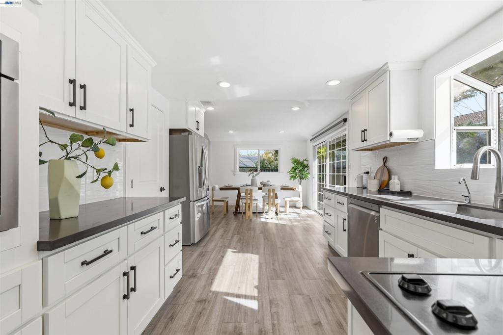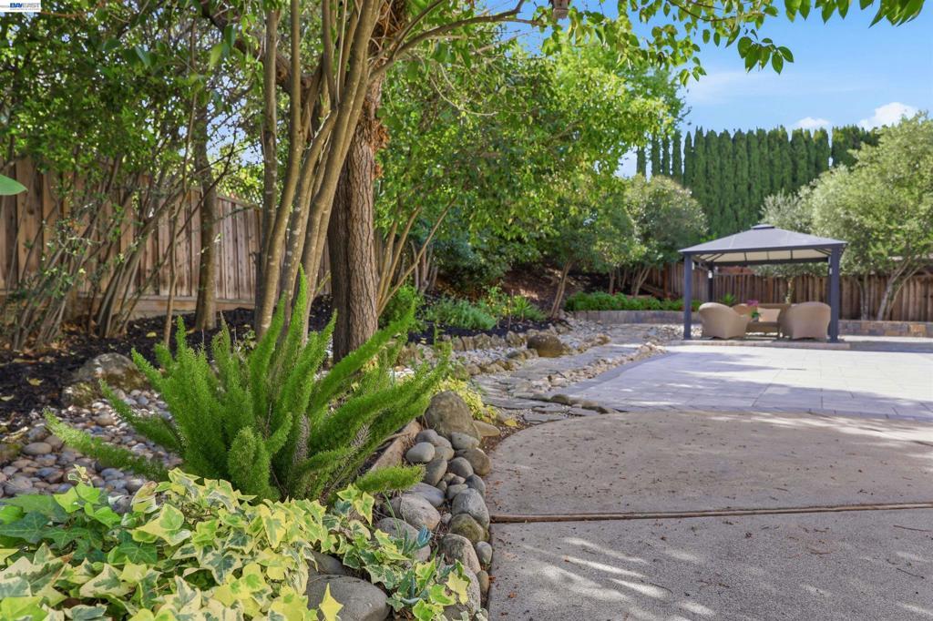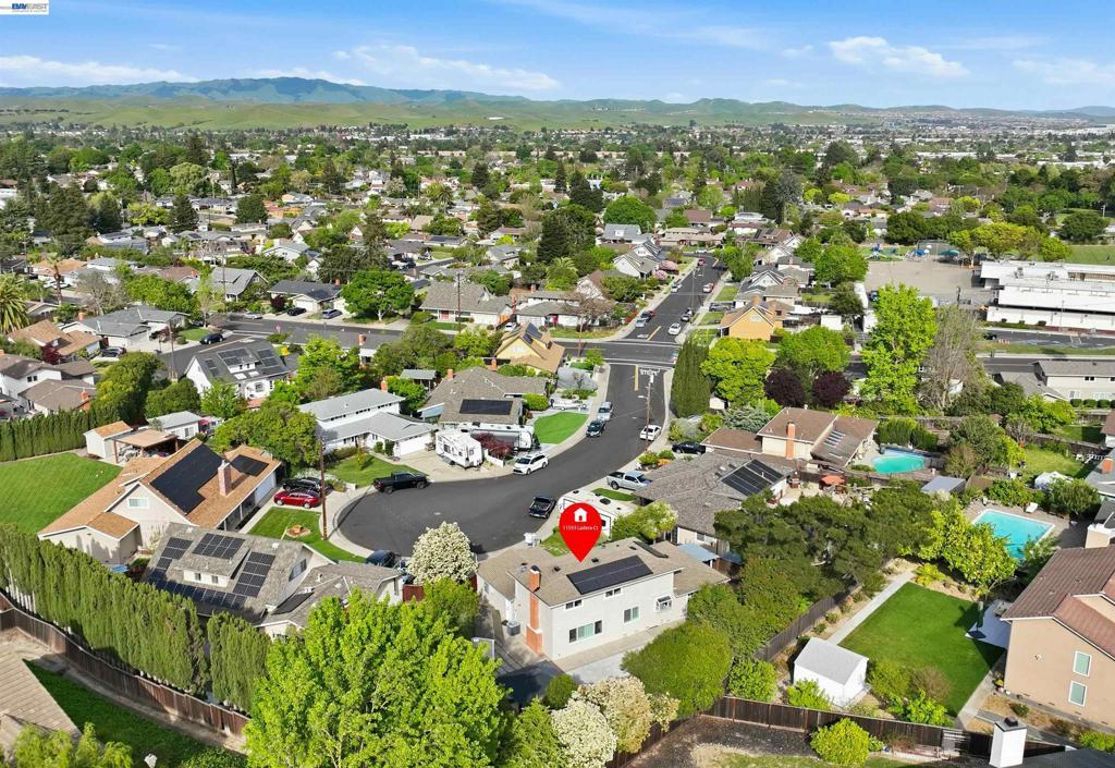 Welcome to 11593 Ladera Ct in Dublin, a beautifully upgraded North-East facing home tucked away in a quiet cul-de-sac with owned solar panels on roof. This spacious 4-bedroom, 2.5-bathroom residence features a desirable layout with the primary bedroom ensuite on the main level and 3 bedrooms upstairs. The home has been fully upgraded, including a newly remodeled kitchen and like new stainless steel appliances, waterproof LVP flooring throughout, 2 tone staircase. LED ceiling lights & recess lights throughout, and a modern accent wall in the living room that adds contemporary character. All bathrooms have been tastefully upgraded for a fresh and modern feel. Step outside to enjoy the large, flat backyard, beautifully landscaped with newer pavers. Complete with a built-in gazebo, evergreen trees and bushes with good privacy. Both side yards are large enough for outdoor dining and a large storage shed. Ideally located in west Dublin, just minutes from 580/680 freeway , Downtown Dublin, Stoneridge Mall , SF outlests , 99 Ranch plaza as well everyday conveniences. No HOA. This home offers the perfect blend of comfort & accessibility.