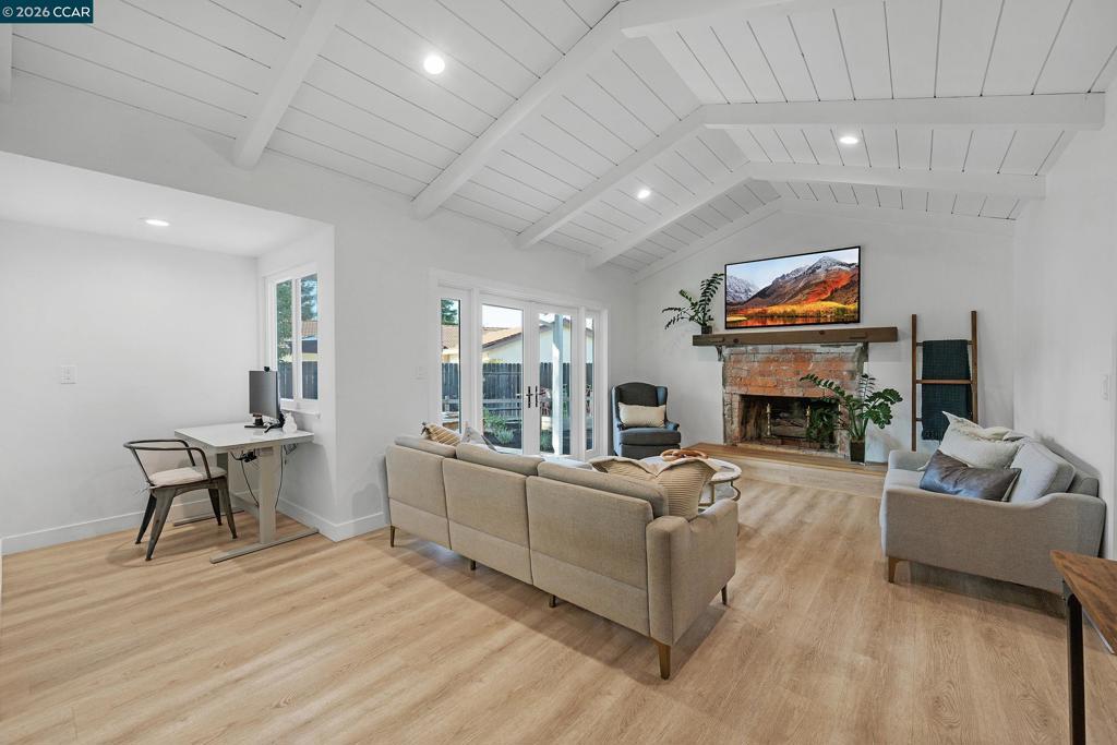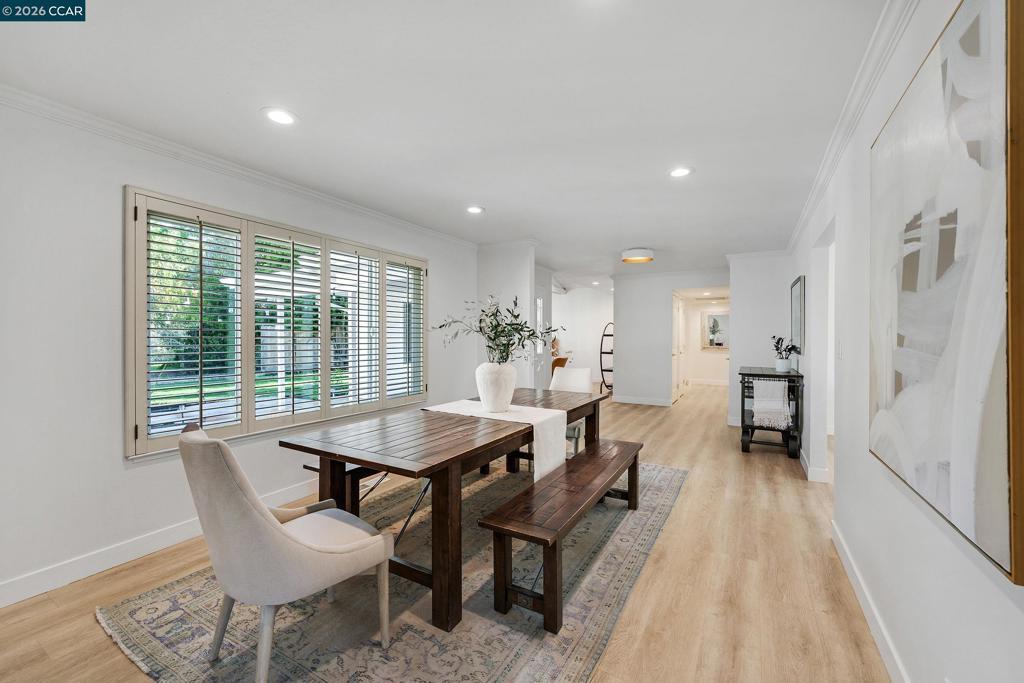 Located in Walnut Creek’s desirable Carriage Square neighborhood, this home enjoys a quiet residential setting known for its established homes, tree lined streets, and convenient location near parks, schools, shopping, and dining. Situated at the end of a private lane on an expansive 0.30 acre lot, 207 Normandy Lane offers exceptional privacy and stunning curb appeal. This beautifully remodeled 4 bedroom, 2.5 bathroom home features approximately 2,499 square feet of move in ready living space with hardwood floors, recessed lighting, and designer finishes throughout. The kitchen is both stylish and functional with granite counters, stainless steel appliances, deep sink, breakfast bar, eat in kitchen nook, and abundant cabinet storage. The home offers a phenomenal layout with a formal living room with vaulted ceilings, formal dining room, and a spacious family room with fireplace perfect for everyday living and entertaining. Bathrooms have been tastefully remodeled, including a hall bathroom with dual sinks and a stunning shower over tub. The expansive primary suite features a beautifully updated bathroom creating a private retreat. The backyard is a true oasis with a pond, bocce ball court, massive flagstone patio, and gardening beds, perfect for relaxing and entertaining.