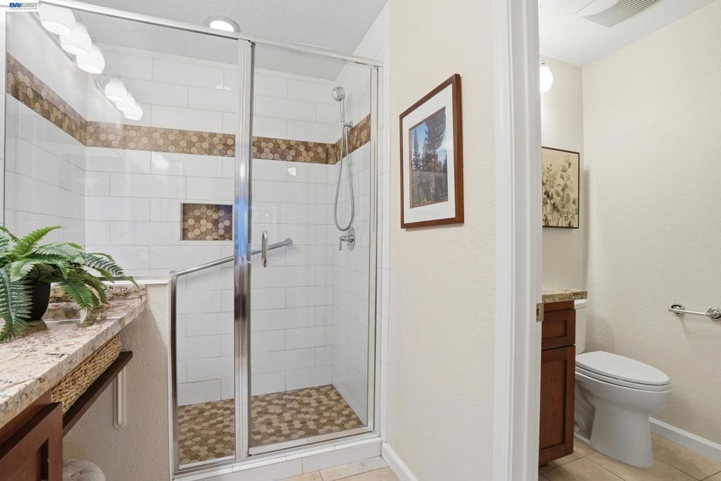 Pleasanton townhome with one of the most tranquil, beautiful backyards. Enjoy BBQing, dining, morning coffee or just chilling in the garden. Take a dip or relax in the community pool or jacuzzi. On cooler days enjoy lounging in the open living room with sightlines to the backyard, the remote-controlled gas fireplace and your big screen TV. Meal making is easy in the well-appointed kitchen. Children, grandchildren or guests can keep you company as they sit at the breakfast bar while you cook. Take your pick from two primary bedrooms, each with its own en-suite bathroom and large walk-in closet. The one on the main floor has a walk-in shower. The very spacious upstairs bedroom’s bath has a large soaking tub with skylight overhead, a great place to unwind after a long day. Parking is easy in the 2-car garage. Whether you’re a sports enthusiast, a hobbyist or the all out holiday decorator, you’ll truly appreciate the garage with its custom workbench and floor to ceiling enclosed storage on both sides. Take a stroll to Pleasanton’s historic downtown where you can enjoy shops, restaurants, Farmer’s Market, and summer concerts. Do yourself a favor, come check it out.