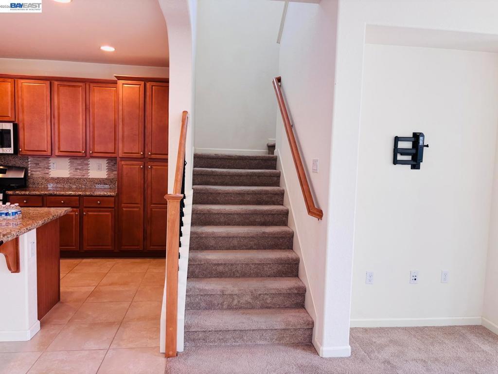 Located in the highly desirable Mountain House – Questa Village! This west-facing home sits in a beautiful and quiet neighborhood and offers 3 bedrooms, 2.5 bathrooms, and approximately 2,077 sq ft of living space. The property is within walking distance to Questa School. The home features a spacious gourmet kitchen with quartz countertops and stainless-steel appliances, along with central A/C and heating. The bright and inviting family room offers plenty of natural sunlight, creating a warm and comfortable living space. There is also a separate laundry room for added convenience. The bright and airy upper level includes a cozy loft area, perfect for a home office, study, or additional living space. The spacious primary bedroom features a walk-in closet, along with two additional bedrooms upstairs.