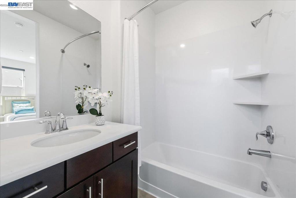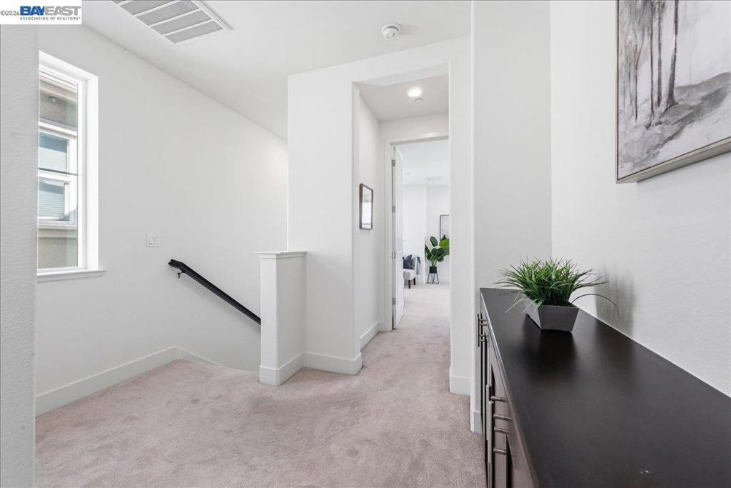 Experience the pinnacle of modern living in this stunning, North-East facing home in East Dublin’s coveted Irongate community. Bathed in natural light, this 4-bedroom, 4-bathroom residence offers unparalleled functionality throughout and sweeping mountain views from the third floor. The thoughtfully designed layout features a private bedroom and full bath on the first level, while the second floor boasts an open-concept living area, gourmet kitchen, and another bedroom with a full bath. The top floor is a true retreat, housing the primary suite and an additional bedroom. One bedroom and full bath at each floor takes convenient living to the next level. Much of this home shines with brand-new hardwood flooring, fresh designer paint, and modern lighting throughout. Premium upgrades include designer cabinets, a water softener, and a private side yard with sleek, modern flooring. Location is everything: you are within walking distance to top-rated Cottonwood Creek K-8 and Emerald High School, and just moments away from Fallon Sports Park, two community parks, Target, Starbucks, and easy I-580 access. No Mello-Roos, a rare and valuable advantage. This well-lit, solar-powered masterpiece blends luxury and convenience in a way that is rarely available. A must see.