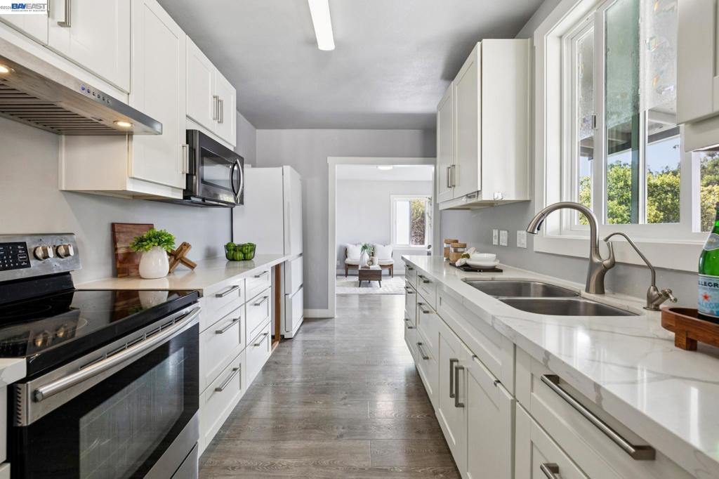 Opportunity meets potential in this charming and thoughtfully updated 2-bedroom, 1-bath single-family home offering 852 sq ft of living space on a generous 6,000 sq ft lot. Whether you're looking to move right in or build your dream home, this property delivers the best of both worlds. The home features a recently updated kitchen with crisp white cabinetry, sleek quartz countertops, and stainless steel appliances. The bathroom has been tastefully refreshed and includes a modern toilet with a bidet. Stylish vinyl flooring runs throughout, creating a cohesive and low-maintenance living environment. Significant groundwork has already been completed for future expansion, including a newly constructed retaining wall and enlarged bedroom closets designed to align with previously approved (now expired) plans for an impressive ~2,800 sq ft tri-level home with 6 beds, 4 baths, and a deck. A rare chance for buyers with vision to expand while comfortably living in the existing home. Ideally situated on a quiet street just below Cal State East Bay, the home enjoys stunning city and bridge views from both the living room and front porch. Conveniently located just minutes from a newly developed shopping plaza featuring Sprouts, Raising Cane's, Starbucks, In-N-Out Burgers & more.