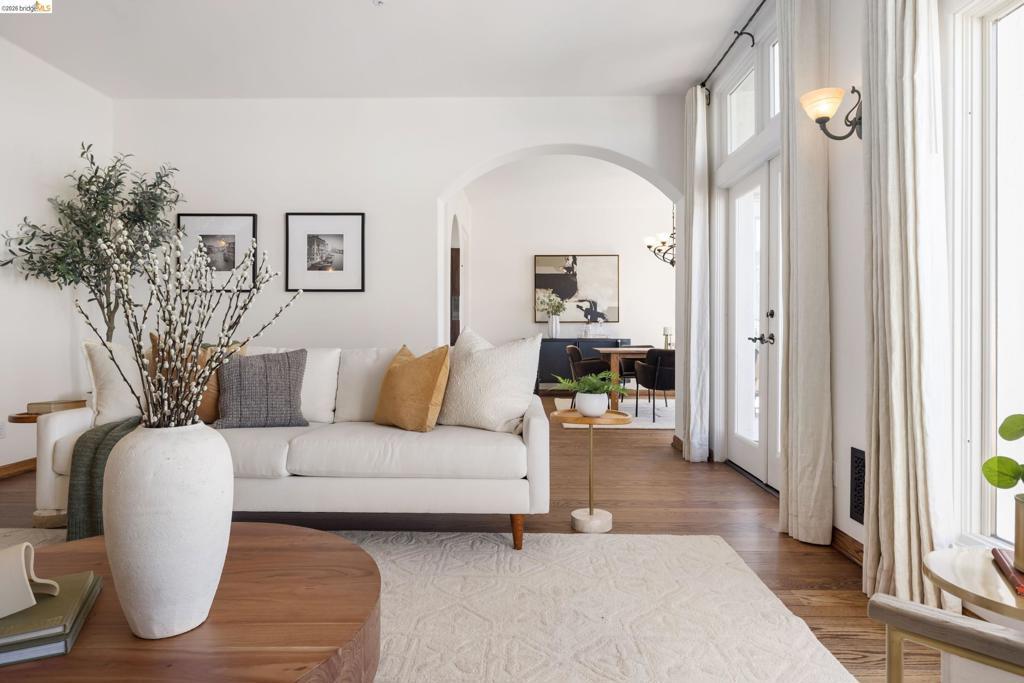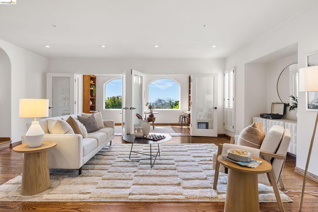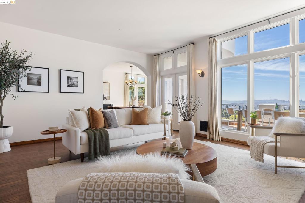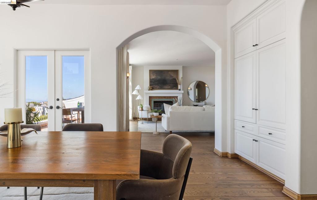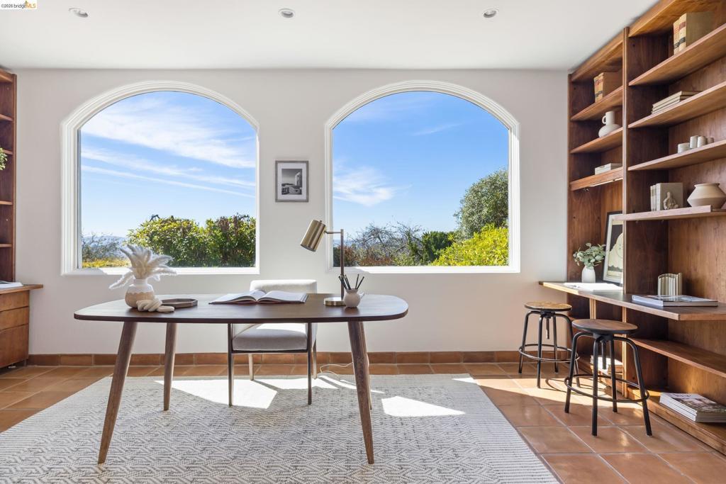 Set in the sought-after Upper Rockridge neighborhood, this residence pairs refined design with sweeping, cinematic views of the Bay framing San Francisco and all three bridges. The main living level welcomes you with an elegant tiled entry, then unfolds with a natural, effortless flow. Panoramic views immediately draw you into the gracious living room with fireplace, seamlessly connected to the dining room. Both spaces open to a generous view deck - an ideal setting for morning light, alfresco evenings, and ever-changing vistas of the Golden Gate and beyond. Upstairs, the primary suite is a spacious retreat, complete with a private deck that captures the same remarkable views. The lower level is thoughtfully designed for flexibility, featuring two spacious bedrooms, a full bath, comfortable family room, and an expansive office well-suited for today’s work-from-home lifestyle. A dedicated laundry room with chute adds convenience and storage, while a wet bar enhances ease and hospitality. Natural light and gracious archways captivate throughout. Don't miss the gardening shed and workshop off the kitchen. Balancing elegance with livability, this Upper Rockridge Mediterranean home offers a rare combination of scale, versatility, and unforgettable views.