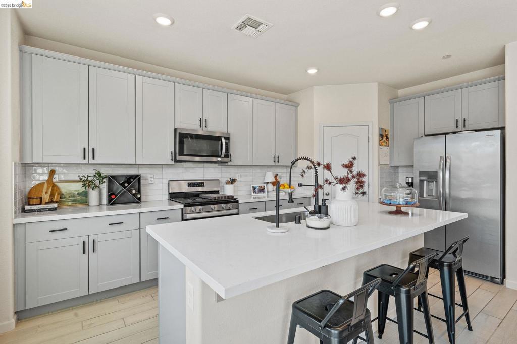 Fabulous newer construction with Solar, 3 bedrooms and a large loft. Beautiful tile plank flooring downstairs in entry, family room, half bath and kitchen. Family room has Shiplap walls, Stainless steel appliance package, built in gas range/cooktop, pantry, large island with breakfast bar and granite slab counters throughout. Tons of natural light shining through. Upstairs has large loft, 2 secondary bedrooms with wall length closets and a full bathroom. The oversized primary bedroom has Shiplap accent wall and is bright and filled with sunshine! Bathroom with walk in closet, sunken tub, separate shower and dual vanity. Convenient upstairs laundry room. Fully landscaped low maintenance backyard with Astroturf lawn, pavers and side yard area. Gated community with walking trail and community park. Minutes to downtown Oakley with restaurants galore and close to delta water ways and easy commute location.