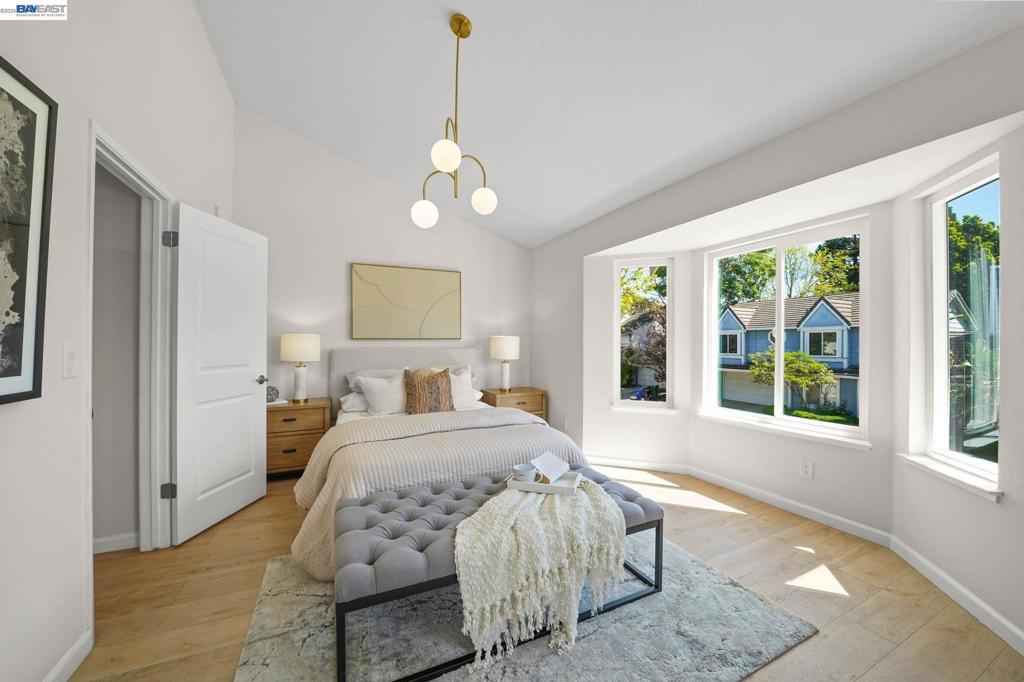 Presenting this beautifully updated single family detached home nestled in a sought-after North Fremont neighborhood. Thoughtfully designed for comfortable living, this inviting home offers vaulted ceilings, new interior doors and hardware, luxury flooring, recessed lighting throughout, 2.5 newly remodeled bathrooms, a remodeled custom kitchen, beautifully landscaped front and backyard with custom slate patio, roses and fruit trees, and no HOA. The bright and modern floorplan features a generous living room with a charming bay window and large windows throughout. The spacious kitchen has a breakfast area with sliding glass door opening to the backyard patio. Upstairs, the generous primary suite boasts high ceilings, bay window, custom walk-in closet, and an elegant en-suite bathroom. The additional bedrooms provide versatile space for family, guests, or a home office. A central heating & air conditioning system provides comfort all year round. The 2-car garage with generous storage space is updated with fresh interior paint and epoxy flooring. A community park is located just a few homes away. This move-in-ready home is in the top-ranked Niles Elementary attendance area. Close to parks, historic Niles, shops. Easy access to 880 and 84/Dumbarton Bridge.