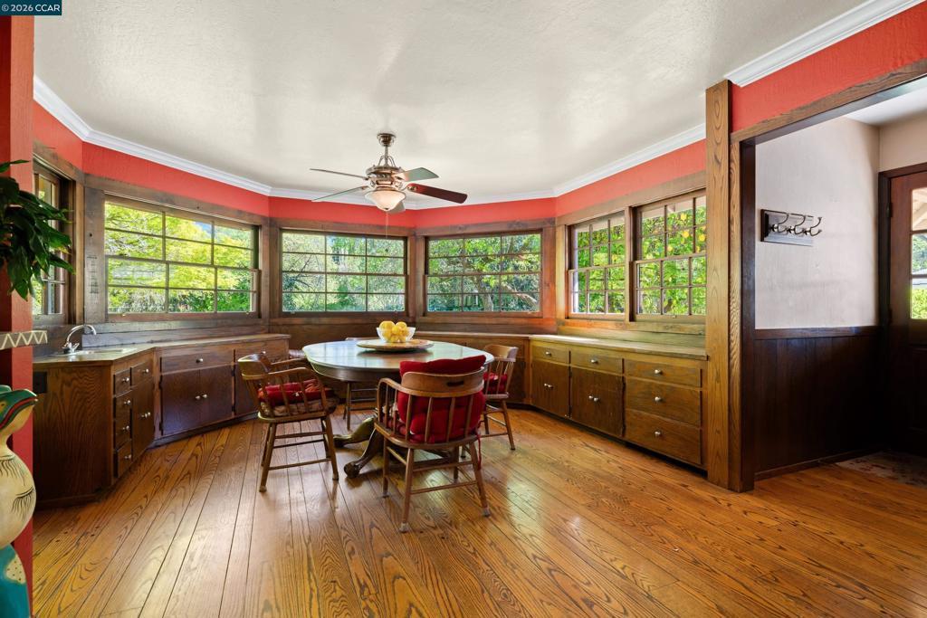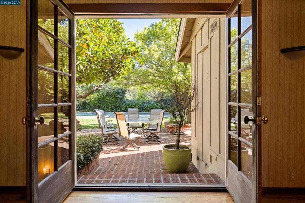 On the market for the first time in 60+ years, this cherished property offers endless possibilities. The inviting entry features old-world random plank hardwood floors. The entertainer's living room impresses with rustic knotty pine walls, vaulted beamed ceilings, a massive wood-burning fireplace, picture windows, and French doors to both the front and backyards. The spacious brick-and-tile kitchen boasts a skylight, stainless steel appliances, and seamless flow to the atrium-like nook with wrap-around built-ins. A wood-paneled formal dining room overlooks the park-like yard through a massive picture window. The spa-like primary suite features a vaulted ceiling, brick fireplace, private French doors to the backyard, and his-and-hers baths and closets. Set on a level .70-acre lot at the end of a quiet street, additional highlights include a detached 2-car garage, carport, bonus room, old-world brick patios, and a sparkling pool, all minutes to Alamo Plaza, parks, the Iron Horse Trail, and freeway access, within a top-rated K–12 school district.
