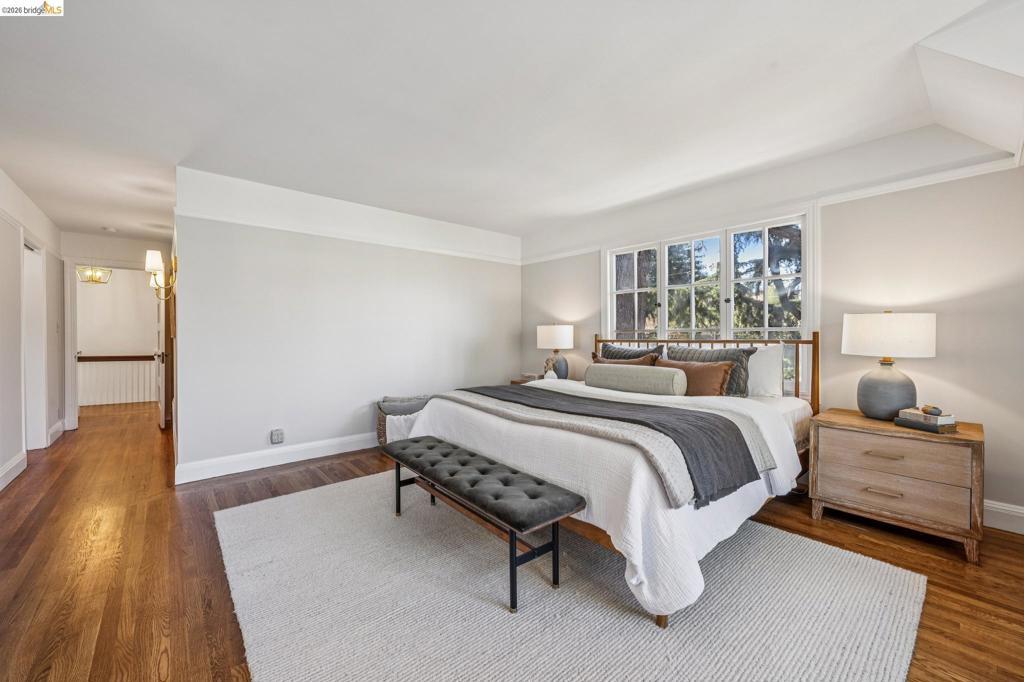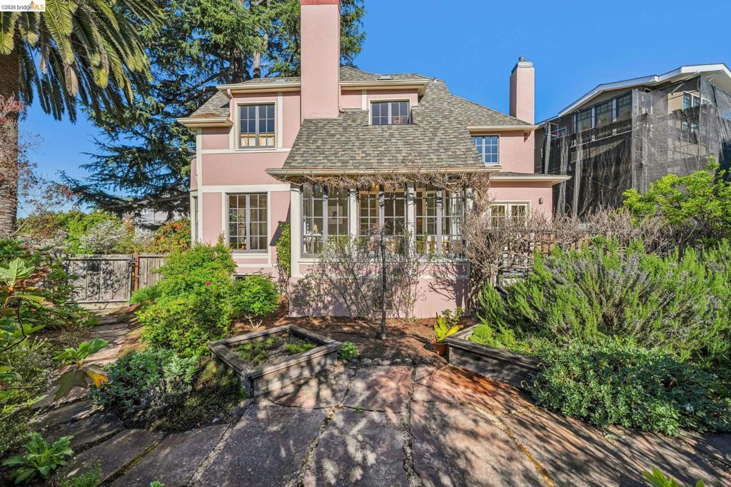 Set on a rare, level corner lot, this gracious home blends space, light, and comfort in all the right ways. A welcoming foyer and classic staircase set the tone, with expansive formal living and dining rooms, a sunlit garden room overlooking wisteria vines and gardens, and an easy connection from the kitchen to the family room to outdoors. Upstairs offers four bedrooms and a flexible loft—ideal for work or quiet retreat. Outside, a spacious deck steps down into lush gardens that meander around to the front where fragrant blossoms and a majestic pine tree anchors the setting. The property straddles both Oakland and Piedmont with two APNs-- this home offers a unique added advantage.