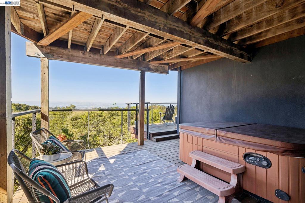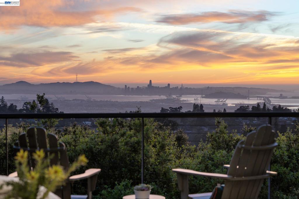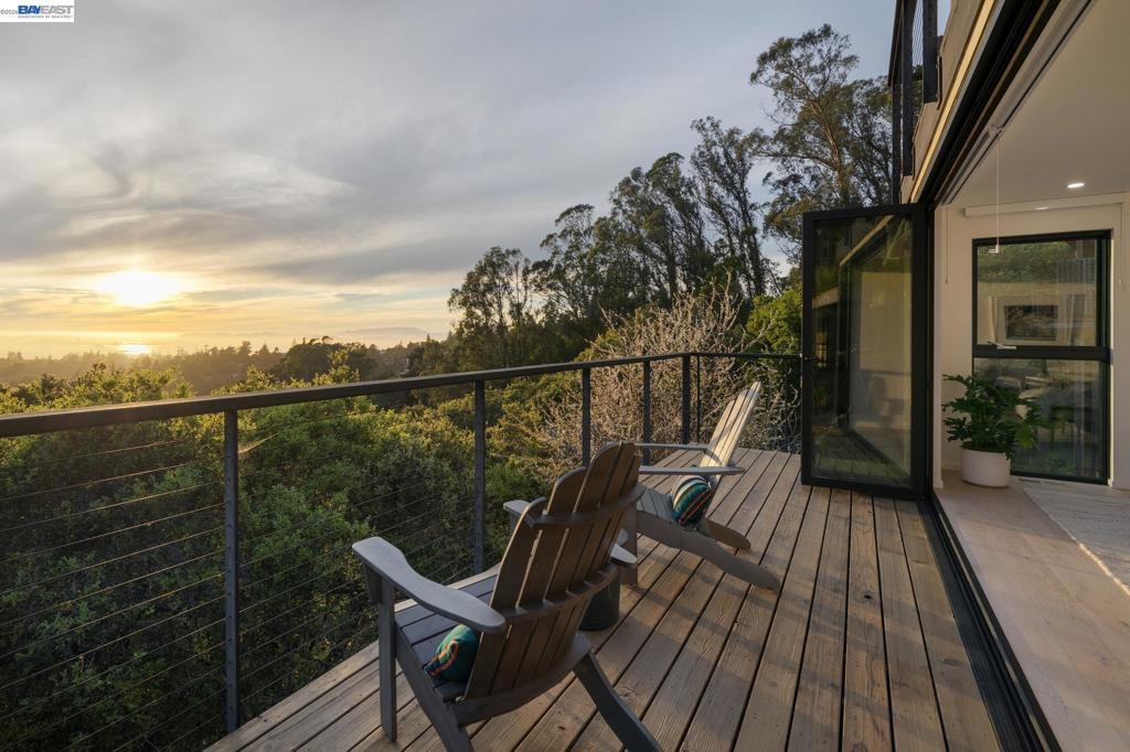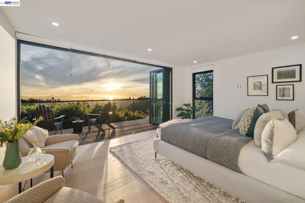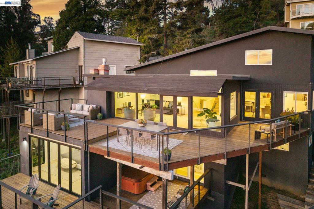 Breathtaking San Francisco, bay and canyon views with outstanding indoor/outdoor living are the backdrop to an exceptional life in this upgraded 3+BD/4BA Montclair home. This sophisticated 2439 SQFT home is light and airy, featuring floor to ceiling windows and la cantina folding glass doors. The sweeping views span from Mount Tam to the Golden Gate Bridge, from San Francisco to Oakland. The home’s dramatic open floorplan features an expansive deck, a beamed wood ceiling, fireplace, dining area, and a modern eat-in kitchen. The main floor is complete with a full bath and sunny bedroom with French doors onto a front patio surrounded by lush landscaping. Downstairs find a laundry room, full bath, and two more bedrooms, including a luxurious primary suite. The primary bedroom features a custom walk-in closet, chic ensuite bath with wet room, and private deck with spectacular views. Unwind in the hot tub admiring the entire SF Bay. This level also connects to a new full bath and bonus room with exterior access, ready as an office, exercise space, or playroom. A 2-car garage and ample storage offer convenience. Enjoy close proximity to Montclair village, public/private schools, and miles of trails to explore in the East Bay parks.