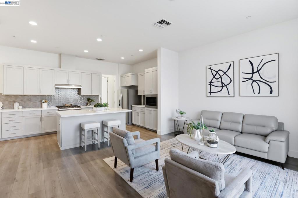 Heart of Downtown Dublin—an award-winning community. This model-like townhome blends modern design, luxury upgrades, and vibrant urban living. Thoughtfully designed indoor-outdoor living space, this home features a bright open floor plan with soaring 10-foot ceilings, oversized windows, and abundant natural light. The main living level is perfect for entertaining, with a sleek chef’s kitchen offering quartz countertops, stylish cabinetry, stainless steel appliances, and a spacious island that flows into the living area. A bedroom and full bath on the main level provide flexibility for guests or a home office. Upstairs, the primary suite offers a private retreat with a walk-in closet and spa-like bath, plus an additional bedroom and full bath. One of the home’s most exceptional features is the private rooftop deck—your own outdoor oasis with panoramic views of the Dublin Hills and Mt. Diablo. Perfect for relaxing, entertaining, or enjoying breathtaking sunsets, this space truly elevates the living experience. Additional features include an attached 2-car garage and unbeatable proximity to BART, shopping, dining, and 580/680. With a low tax rate and HOA, and a location that truly has it all, this is modern East Bay living at its finest. Views: Downtown