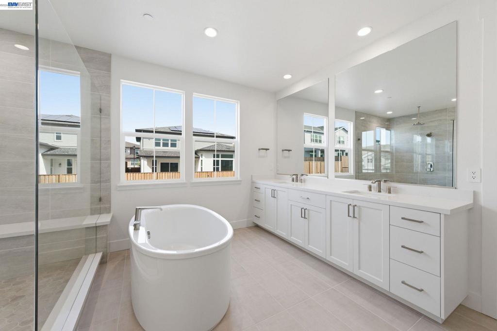 Welcome to Homesite 20 at Azure, a thoughtfully designed two-story home offering approximately 3,650 sq. ft. of refined living space and move-in ready. From the moment you enter, a welcoming first-floor entry sets the tone and leads to Bedroom 4. The kitchen is both elegant and functional, appointed with recessed-panel Beech Shaker cabinetry, chrome hardware, quartz countertops with a 6-inch backsplash, and Bosch stainless steel appliances. Designed as the heart of the home, the expansive kitchen features a large center island, generous counter space, and a walk-in pantry that delivers exceptional storage and everyday convenience. The kitchen flows seamlessly into the dining area and expansive great room, where large windows fill the space with natural light. Indoor-outdoor California living is easily enjoyed with direct access to a covered outdoor room and a tranquil courtyard, creating the perfect setting. The primary suite features a spa-inspired bathroom with a walk-in shower, dual vanities, and a walk-in closet. Two additional secondary bedrooms each offer their own bathroom access, while a centrally located laundry room provides added functionality and storage.