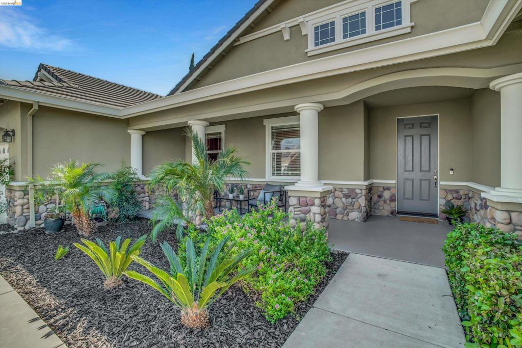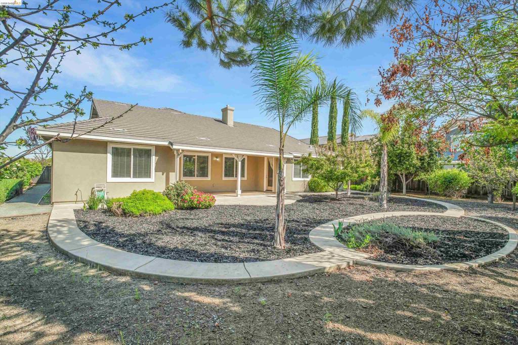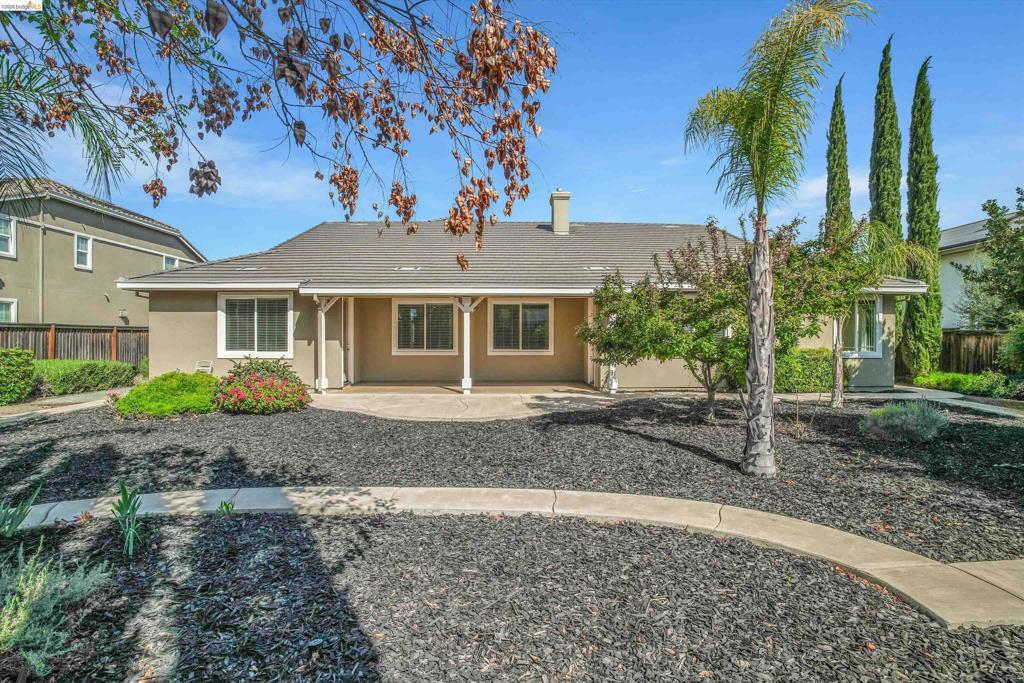 Welcome to the esteemed Portofino Estates, known for its wide streets and beautiful homes. This thoughtfully designed single-story residence offers an ideal floor plan with the primary suite and an additional bedroom on one side of the home, while a separate wing features two bedrooms and a full bathroom—perfect for multi-generational living or added privacy. Lovingly cared for by the original owners, the home features newer laminate flooring, fresh exterior paint, and a whole house fan. The kitchen offers additional cabinetry, granite countertops, and the ability to add a gas stovetop for enhanced cooking flexibility, while the living room is highlighted by a cozy fireplace. Interior details include elegant 9-foot paneled doors and elevated baseboards, and the laundry room includes a convenient sink. Additional highlights include a tandem 3-car garage and space for RV or boat parking. The spacious backyard features fruit trees, rose bushes, and covered front and back patios—perfect for relaxing or entertaining. Conveniently located near Dolphin Park and Blue Goose Park, both with water attractions, this home also offers access to a network of paths connecting to the Mokelumne and Marsh Creek Trails, providing seamless access to numerous parks and recreation destinations.