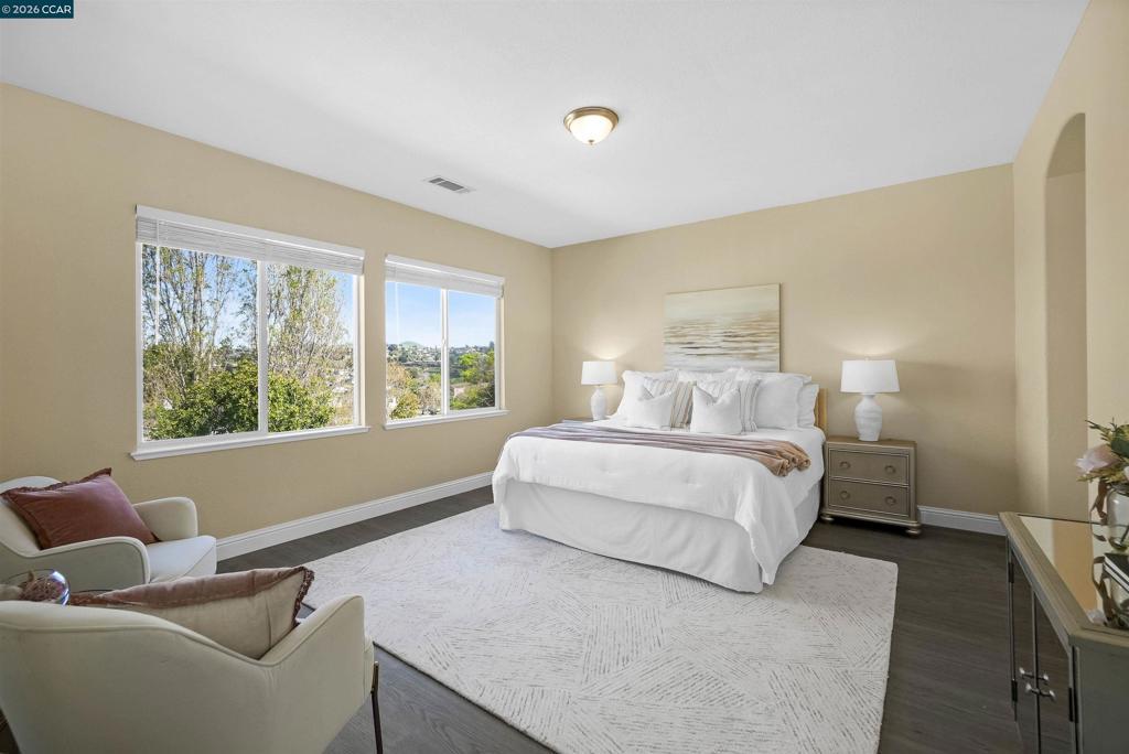 Welcome to Victoria by the Bay—where comfort, style, and location come together. This beautifully updated home features a spacious driveway and 2-car garage, along with new luxury plank flooring throughout and updated window treatments that enhance both light and privacy. The remodeled kitchen shines with quartz countertops, newer appliances, a modern sink, and sleek faucet—perfect for everyday living and entertaining. Enjoy updated light fixtures throughout the living, dining, kitchen, and bathrooms, along with a cozy fireplace in the living area that adds warmth and charm. The primary suite offers a private retreat with a remodeled bathroom, including a new dual vanity, additional single vanity cabinetry, modern faucets, hardware, and updated lighting. Step outside to a spacious, beautifully manicured backyard with fresh brown wood chip—ideal for relaxing or hosting gatherings. Located just a short walk to Victoria Park, the Bay waterfront, and the scenic Bay Trail. Conveniently close to shopping, groceries, gas, freeway access, and public transportation. A true move-in ready home in one of the area’s most desirable communities.