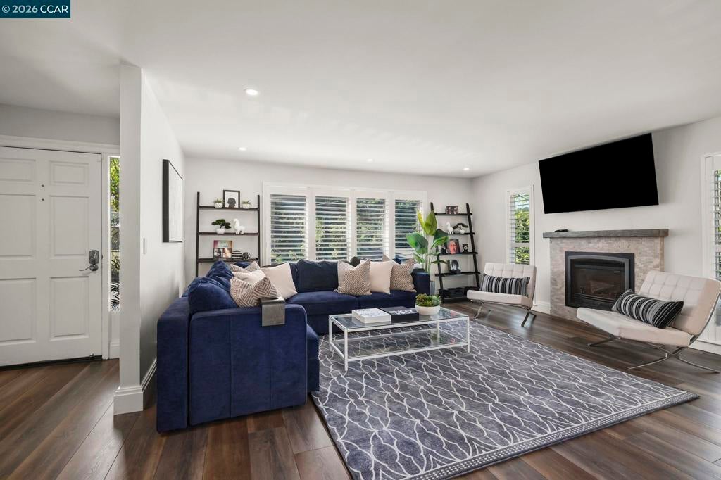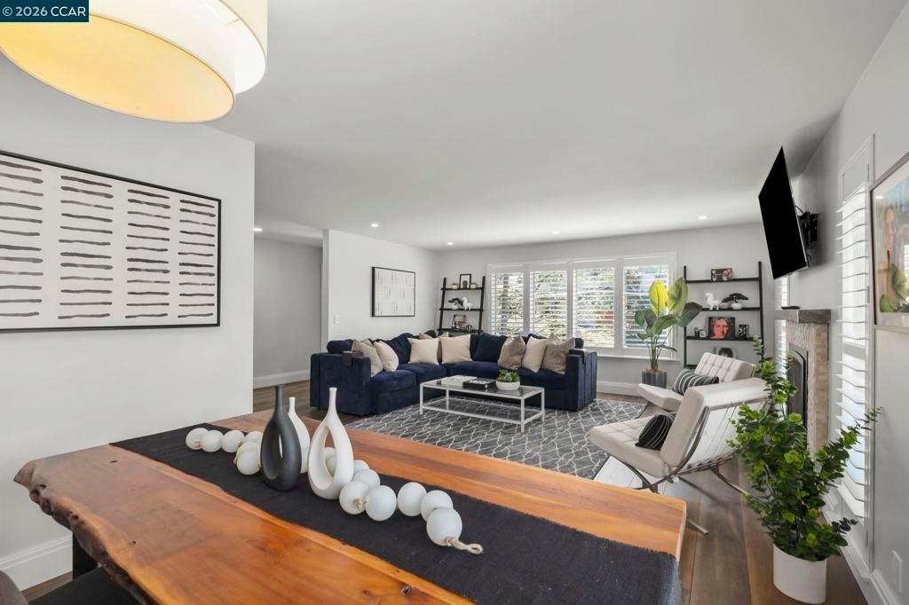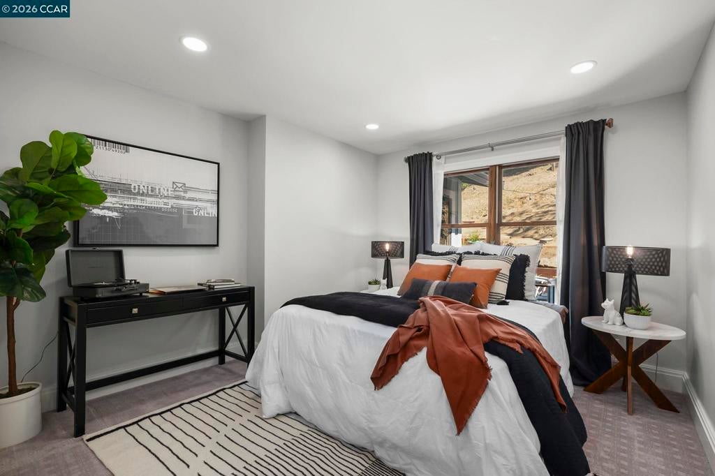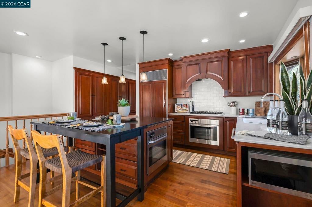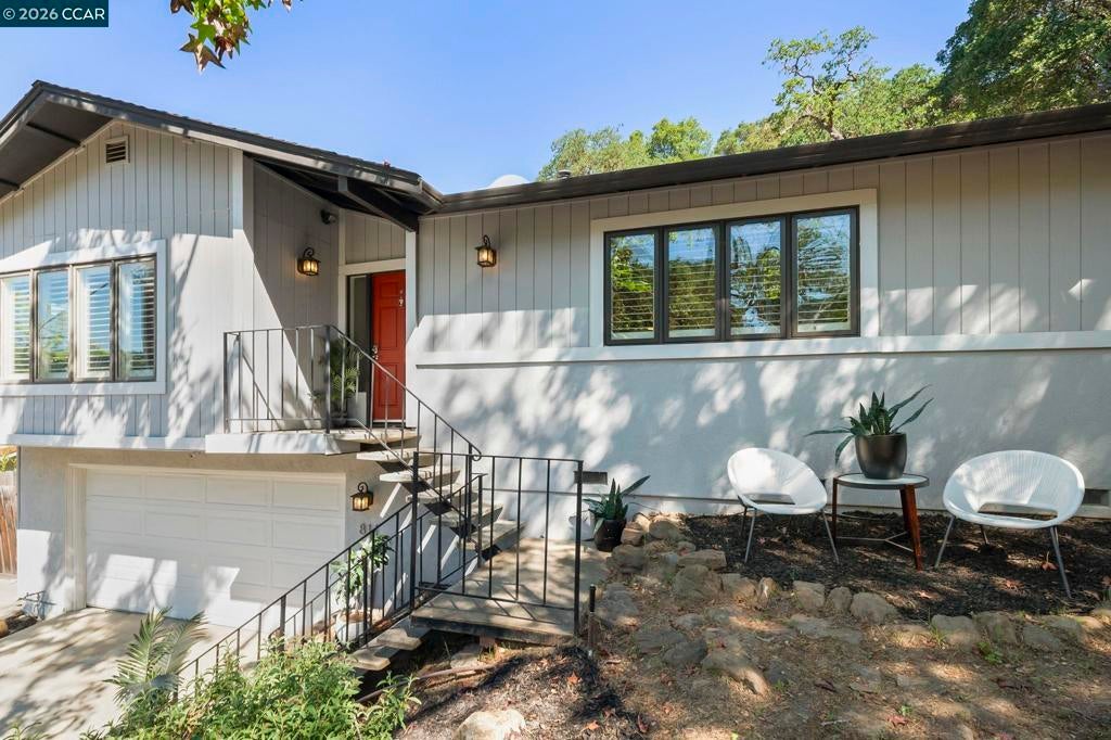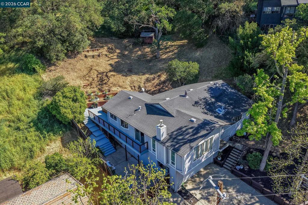 Tucked on a quiet court in the Martinez hills, this home offers privacy, space, & stunning views on a .32-acre lot. This 2,065 sq ft home features 4 bedrooms and 3 baths with a thoughtful, flexible layout. The beautifully updated kitchen is a chef’s dream with Viking gas cooktop, Sub-Zero refrigerator, Miele double ovens, workstation island, and abundant storage. Hardwood floors and eat in kitchen options frame breathtaking green hillside views. Step out to a spacious deck—perfect for dining, relaxing, and enjoying California living. The great room showcases luxury vinyl plank flooring, designer lighting, plantation shutters, and scenic outlooks. Two secondary bedrooms are filled with natural light, while the hall bath features a stylish color-drenched design. The serene primary suite offers a Juliet balcony, walk-in closet, and tranquil bath. Downstairs, a private guest suite with full bath and workspace is ideal for multigenerational living, guests, or rental potential. Plus an oversized 2-car garage, ample parking, mature trees, and a charming chicken coop. Minutes to downtown Martinez, dining, marina, and Hwy 4. A true lifestyle property! --