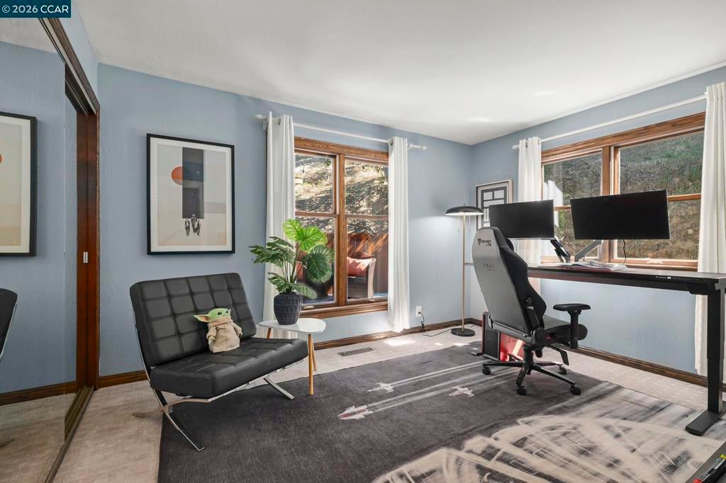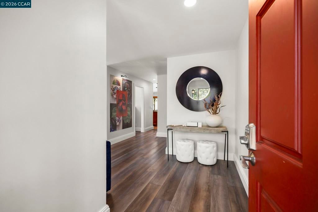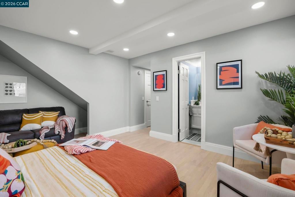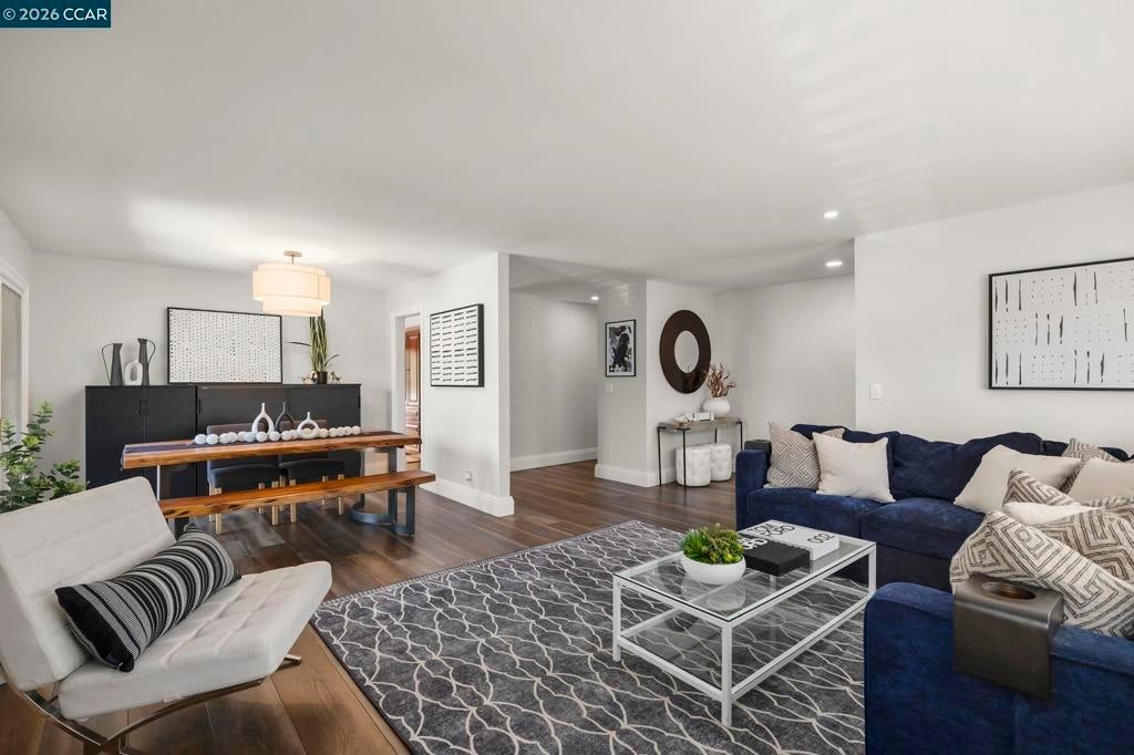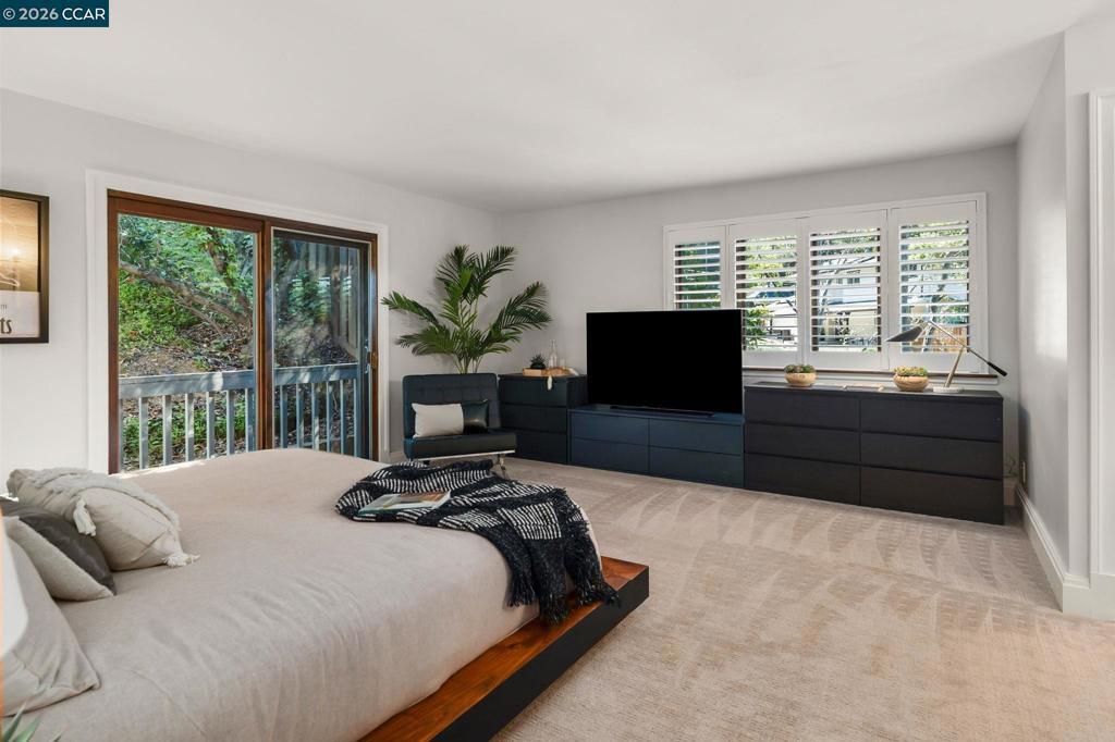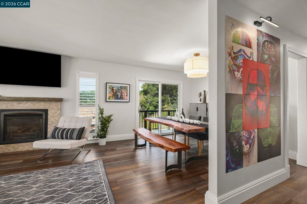Tucked on a quiet court in the Martinez hills, this home offers privacy, space, & stunning views on a .32-acre lot. This 2,065 sq ft home features 4 bedrooms and 3 baths with a thoughtful, flexible layout. The beautifully updated kitchen is a chef’s dream with Viking gas cooktop, Sub-Zero refrigerator, Miele double ovens, workstation island, and abundant storage. Hardwood floors and eat in kitchen options frame breathtaking green hillside views. Step out to a spacious deck—perfect for dining, relaxing, and enjoying California living. The great room showcases luxury vinyl plank flooring, designer lighting, plantation shutters, and scenic outlooks. Two secondary bedrooms are filled with natural light, while the hall bath features a stylish color-drenched design. The serene primary suite offers a Juliet balcony, walk-in closet, and tranquil bath. Downstairs, a private guest suite with full bath and workspace is ideal for multigenerational living, guests, or rental potential. Plus an oversized 2-car garage, ample parking, mature trees, and a charming chicken coop. Minutes to downtown Martinez, dining, marina, and Hwy 4. A true lifestyle property! --
