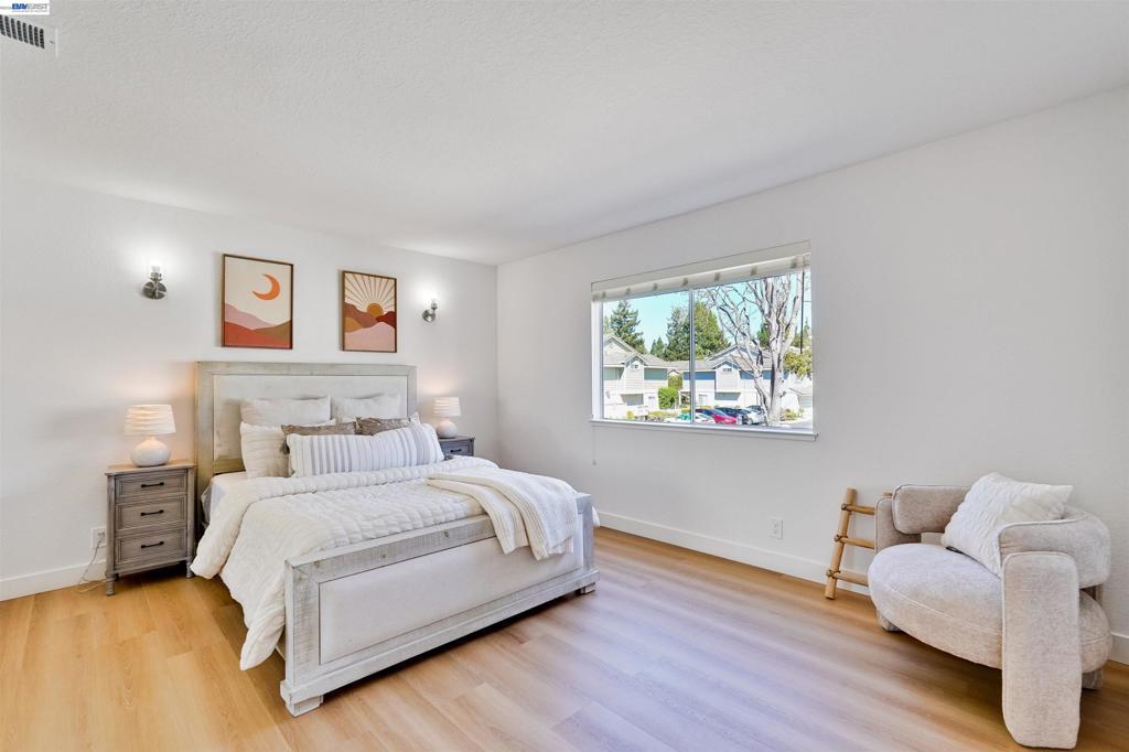 $77,000 upgrades since 2024. Experience modern living in this gorgeous, move-in-ready two-story corner townhouse. Bathed in natural light, the home features a open floor plan and a bright living room perfect for relaxing. The kitchen has been beautifully upgraded with premium countertops and recessed lighting, all complemented by fresh interior paint and high-quality hardwood floors throughout. The expansive primary suite serves as a true sanctuary, featuring a walk-in closet and plenty of space for a nursery, home office, or fitness studio. Upstairs, a hallway skylight ensures the home feels airy and vibrant year-round. Outside, you'll find a charming front yard filled with lush flowers and plants, plus the added convenience of a side-by-side two-car garage. Ideally situated within walking distance to the distinguished Forest Park Elementary and Fisher Park, this home offers an unbeatable commute near I-880, Hwy 84, Meta HQ, and Google shuttle stops. Enjoy a low-maintenance lifestyle with an HOA that covers your roof ,water, hazard insurance, and exterior maintenance.