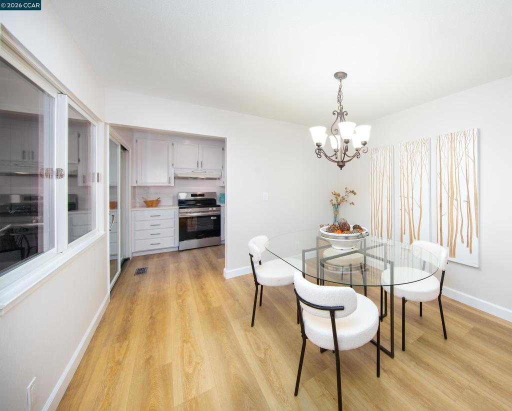 Rarely available Pinehurst model offering a highly desirable combination of space, functionality, and comfort in Rossmoor’s premier 55+ community. This thoughtfully updated home features two private bedroom suites, each with its own walk-in closet, providing ideal separation for guests, office use, or shared living. A separate dining room adds to the single-family feel, while the dedicated laundry room offers everyday convenience. The bright kitchen opens to the patio through a sliding glass door, creating a seamless indoor-outdoor setting—perfect for morning coffee or relaxed afternoons. The home has been refreshed with new flooring, fresh interior paint, and new appliances, making it move-in ready. Dual-pane windows throughout enhance comfort and create a quiet interior environment, while the location offers convenient access to the Event Center, Golfing, and coming-soon Restaurant. Enjoy pleasant views of the golf course from the rear of the home. Additional highlights include a private garage plus dedicated golf cart parking—a rare and valuable feature within the community. This is an exceptional opportunity to own a Pinehurst model with features seldom found together, offering both comfort and value in one of Walnut Creek’s most sought-after active adult communities.