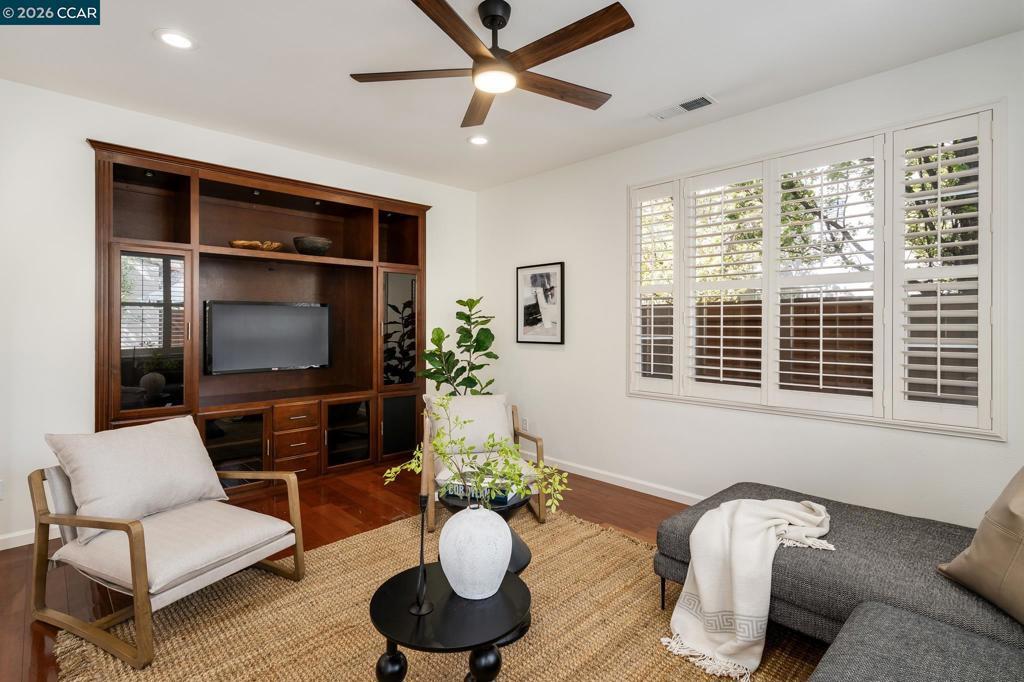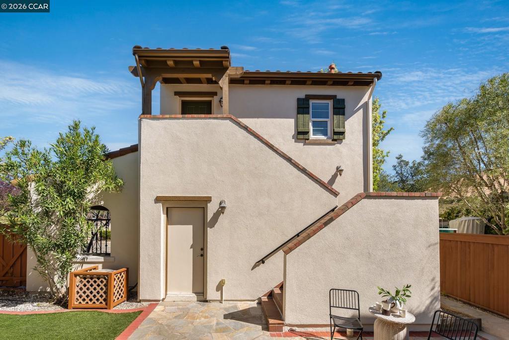 Welcome to this beautifully updated Mediterranean-style home in the highly desirable Gale Ranch community, featuring a detached in-law suite (~320+ sq ft) with private entry. Fresh interior and exterior paint and an owned solar system enhance efficiency and appeal. Situated on a premium corner lot, the home is filled with natural light and offers hardwood flooring, plantation shutters, and recessed LED lighting throughout. The open floor plan is ideal for living and entertaining. The gourmet kitchen features granite countertops with slab backsplash, Whirlpool stainless steel appliances, gas cooktop, refrigerator, and a large island with breakfast bar, opening to a family room with built-in media center. The main level includes a formal dining room, fireplace, full bedroom and bath, and a spacious storage room. Upstairs, the primary suite offers a spa-like bath with dual vanities, soaking tub, glass shower, and custom walk-in closet. A versatile den provides a perfect work-from-home space. Enjoy a landscaped backyard with patio, plus a 2-car garage and carport (3 spaces total). The private in-law unit adds flexibility for guests or rental income. Conveniently located near top schools, Bishop Ranch, parks, and I-680.